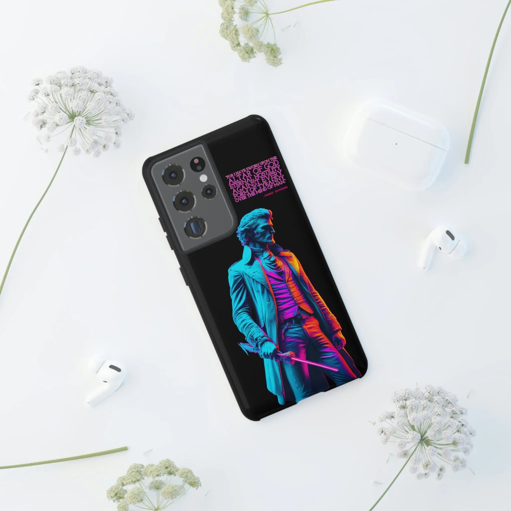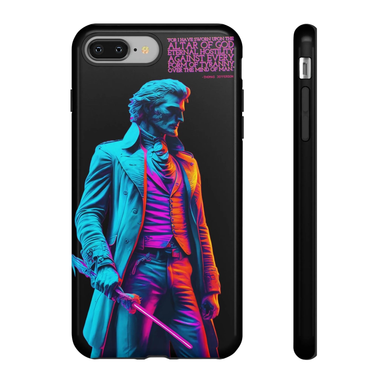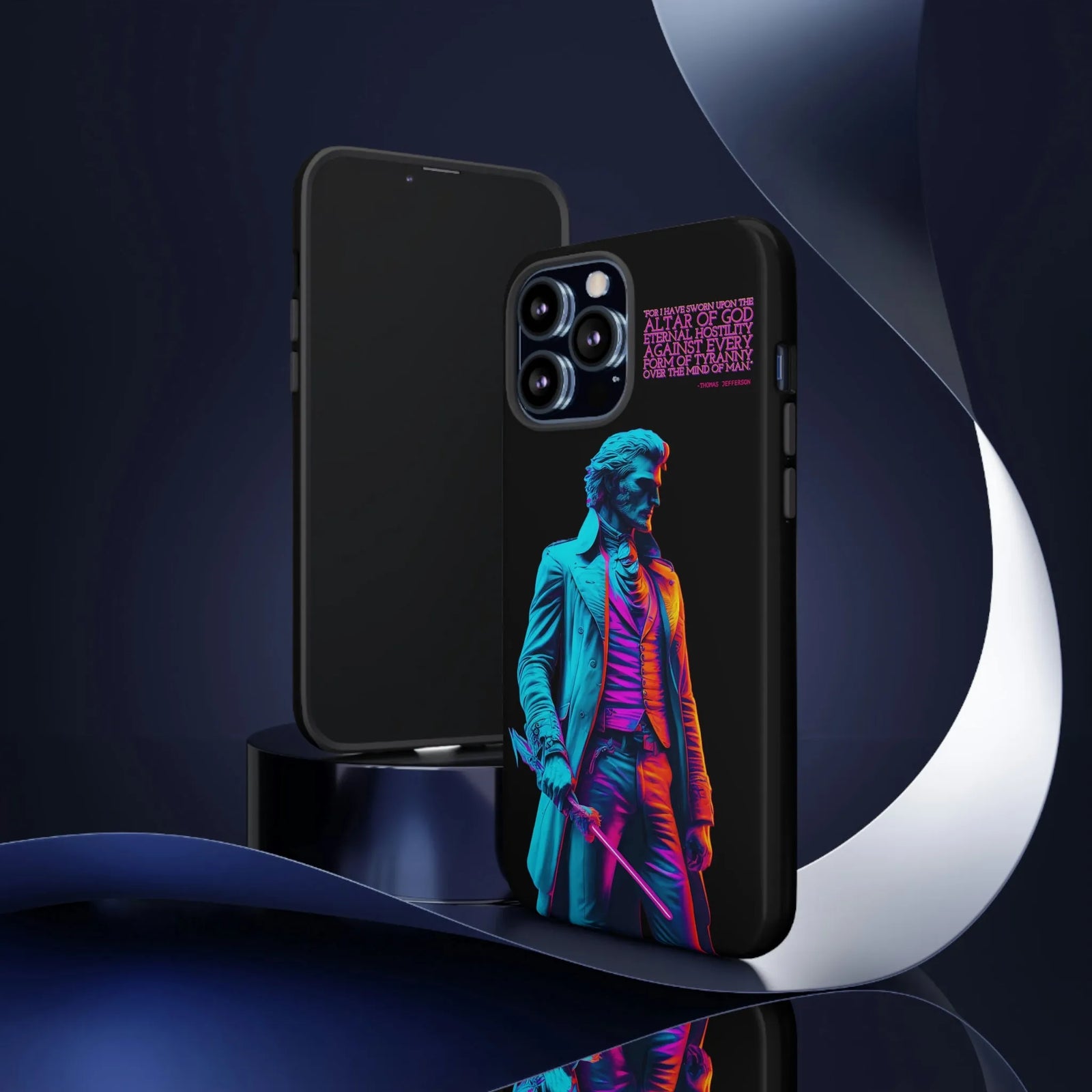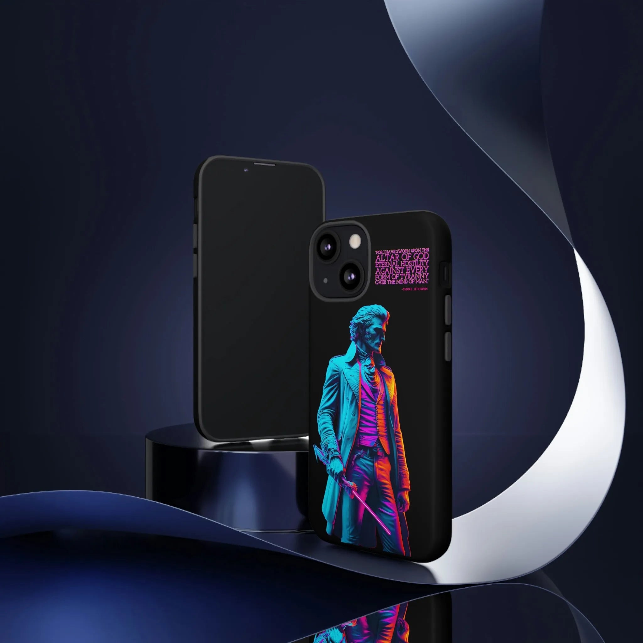 Introducing the Thomas Jefferson Synthwave Phone Case, the perfect accessory for anyone looking to add a touch of retro futurism to their device. Featuring a bold and vibrant image of Thomas Jefferson, this case is a nod to the synthwave art style that is both stylish and unique.