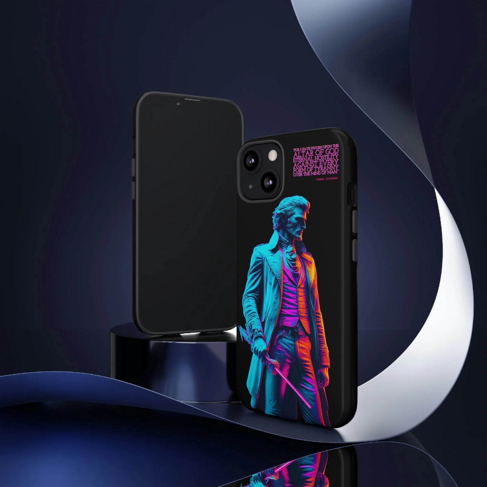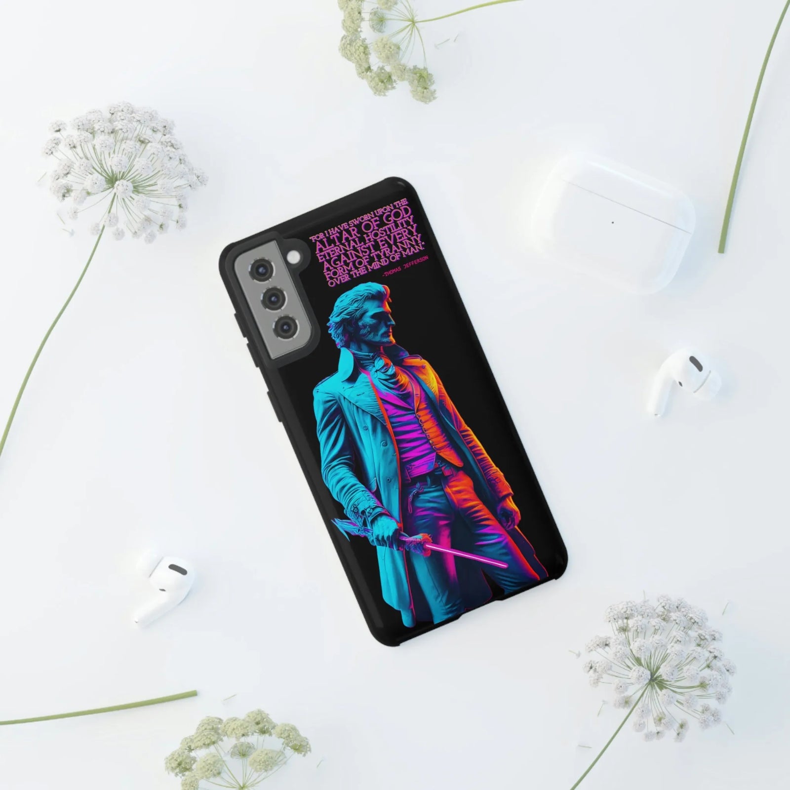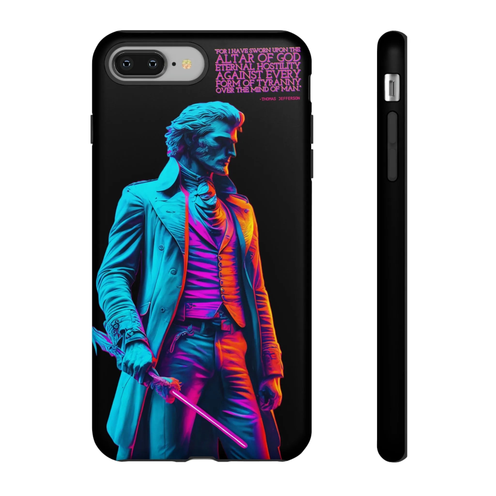 Introducing the Thomas Jefferson Synthwave Phone Case, the perfect accessory for anyone looking to add a touch of retro futurism to their device. Featuring a bold and vibrant image of Thomas Jefferson, this case is a nod to the synthwave art style that is both stylish and unique.