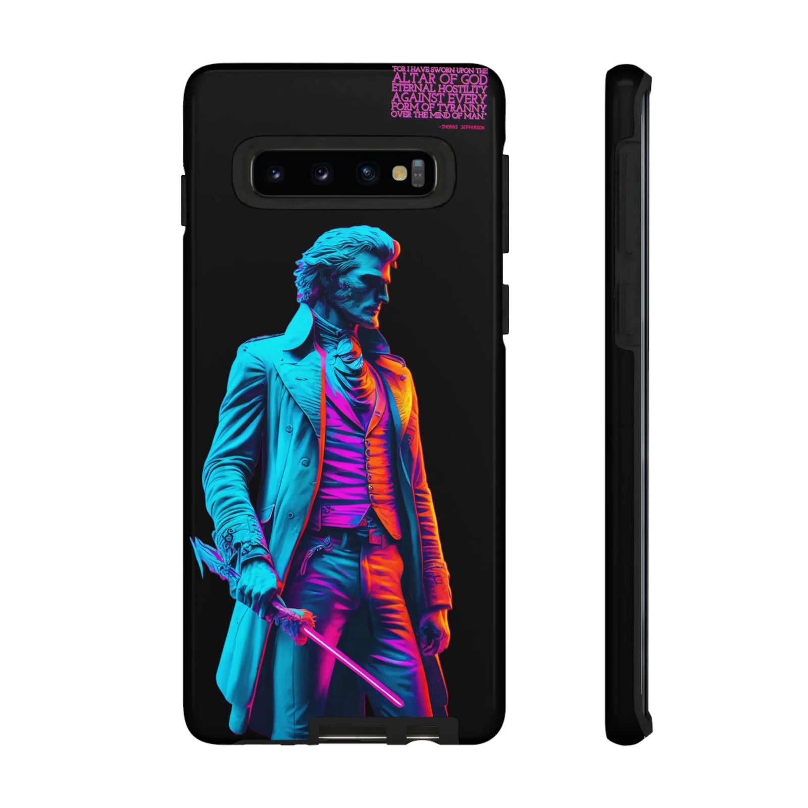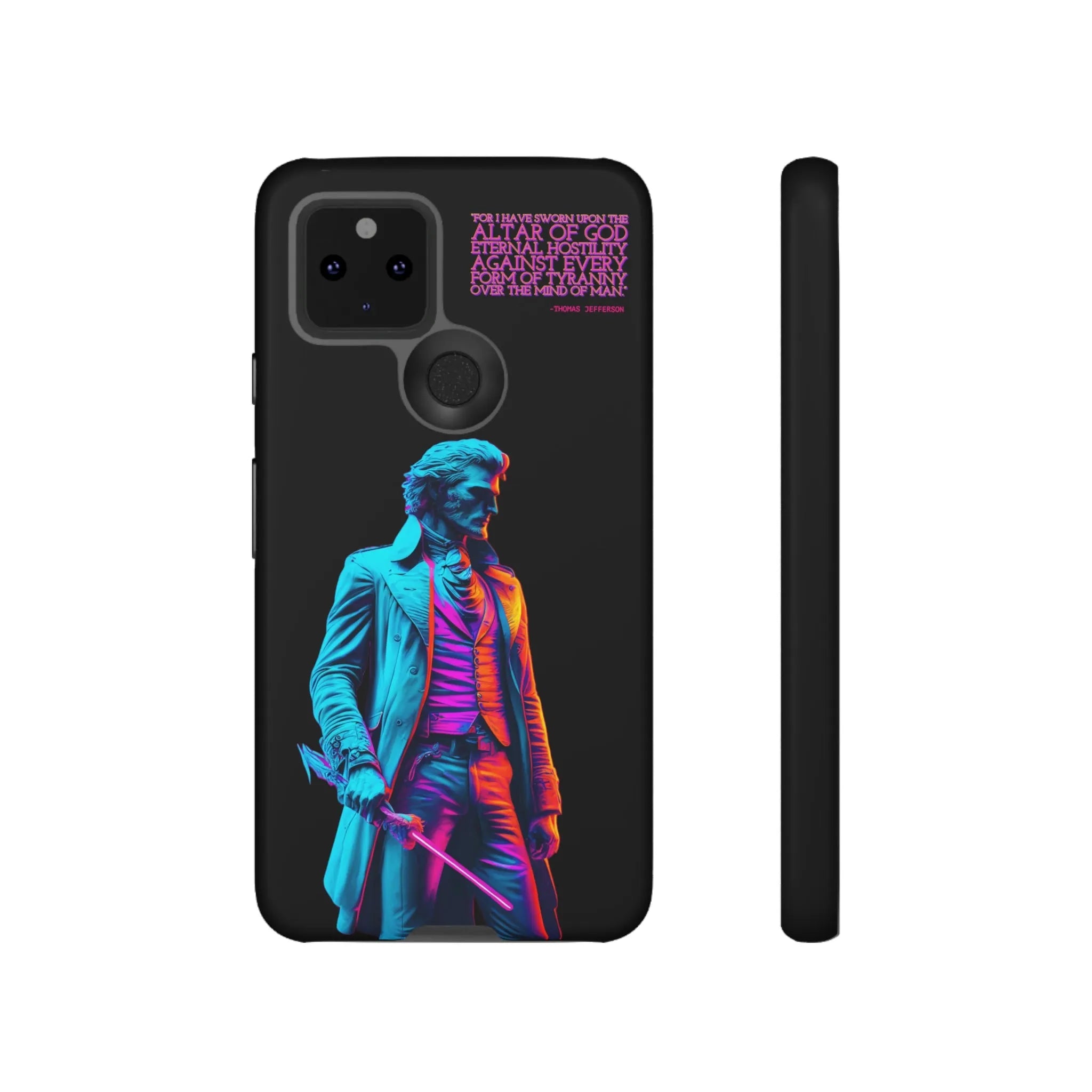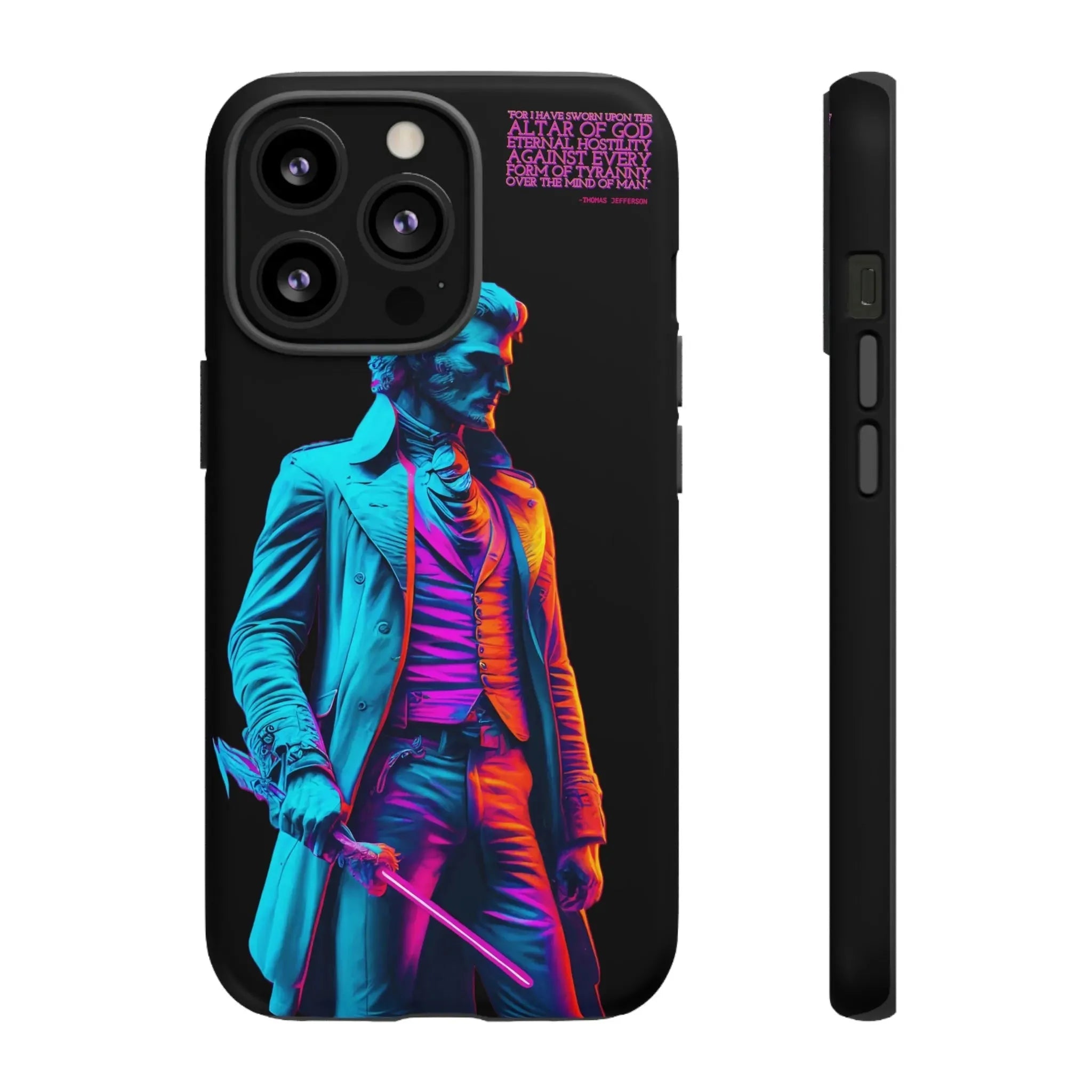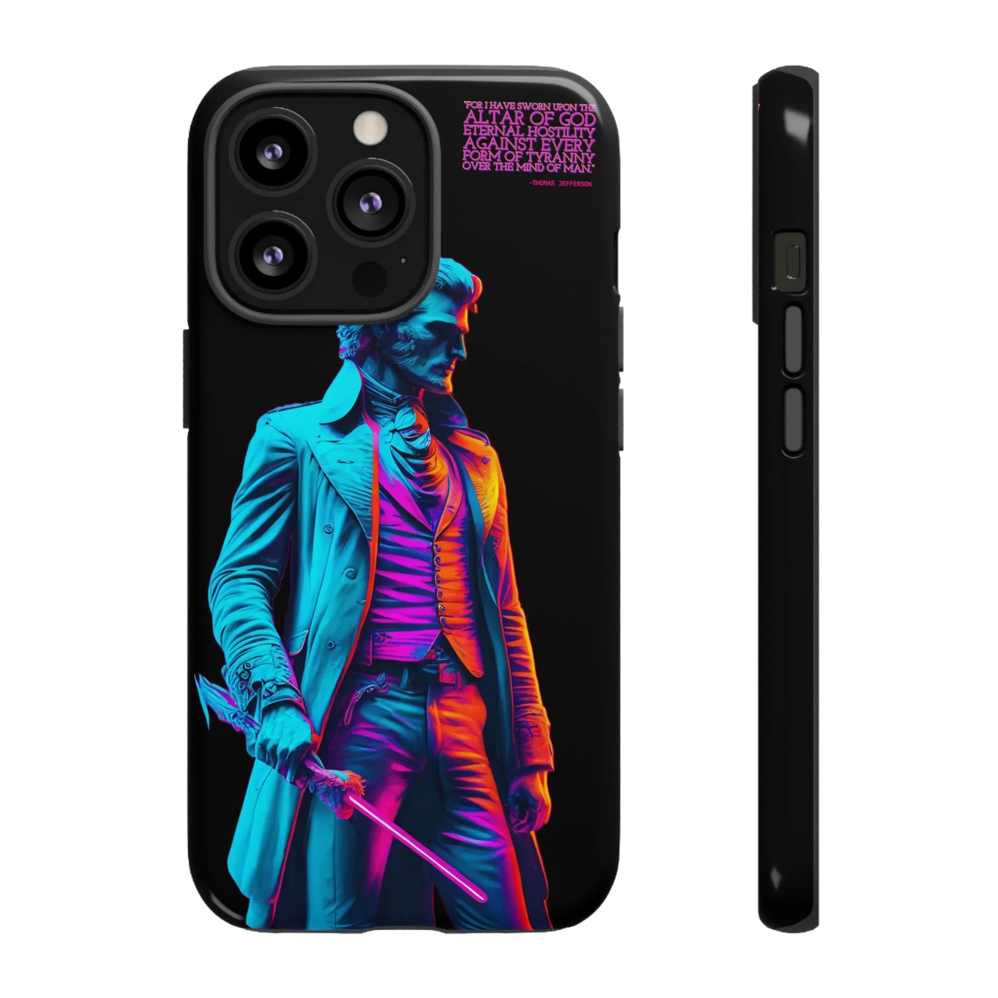 Introducing the Thomas Jefferson Synthwave Phone Case, the perfect accessory for anyone looking to add a touch of retro futurism to their device. Featuring a bold and vibrant image of Thomas Jefferson, this case is a nod to the synthwave art style that is both stylish and unique.