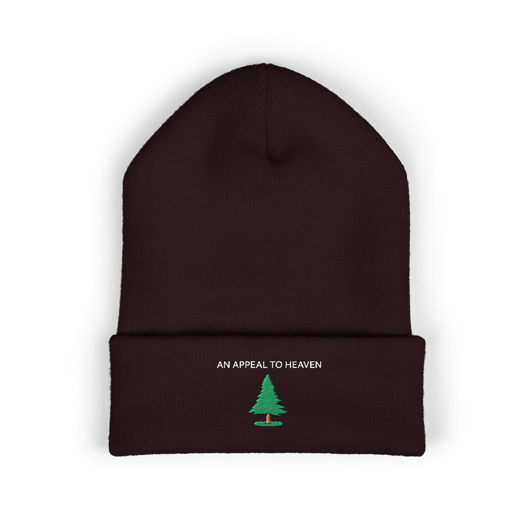 A simple mark of old American resolve. This cuffed beanie carries an embroidered evergreen and the words “An Appeal to Heaven,” a quiet signal rooted in the founding belief that natural rights outrank earthly rule. The small tree sits like a trail sign from another century. Subtle. Intentional. A reminder of where freedom begins.