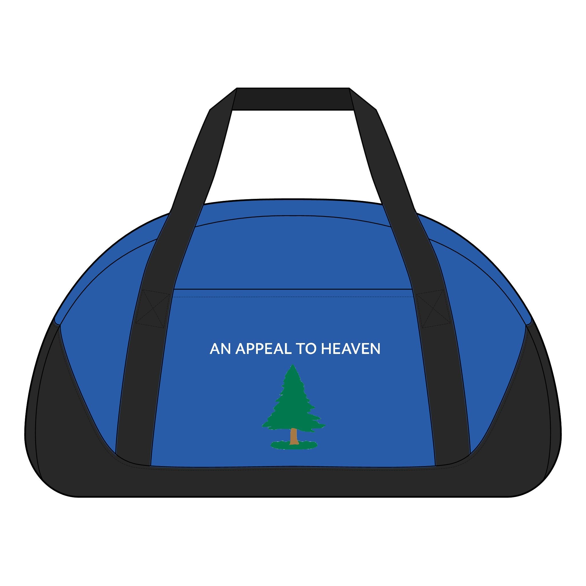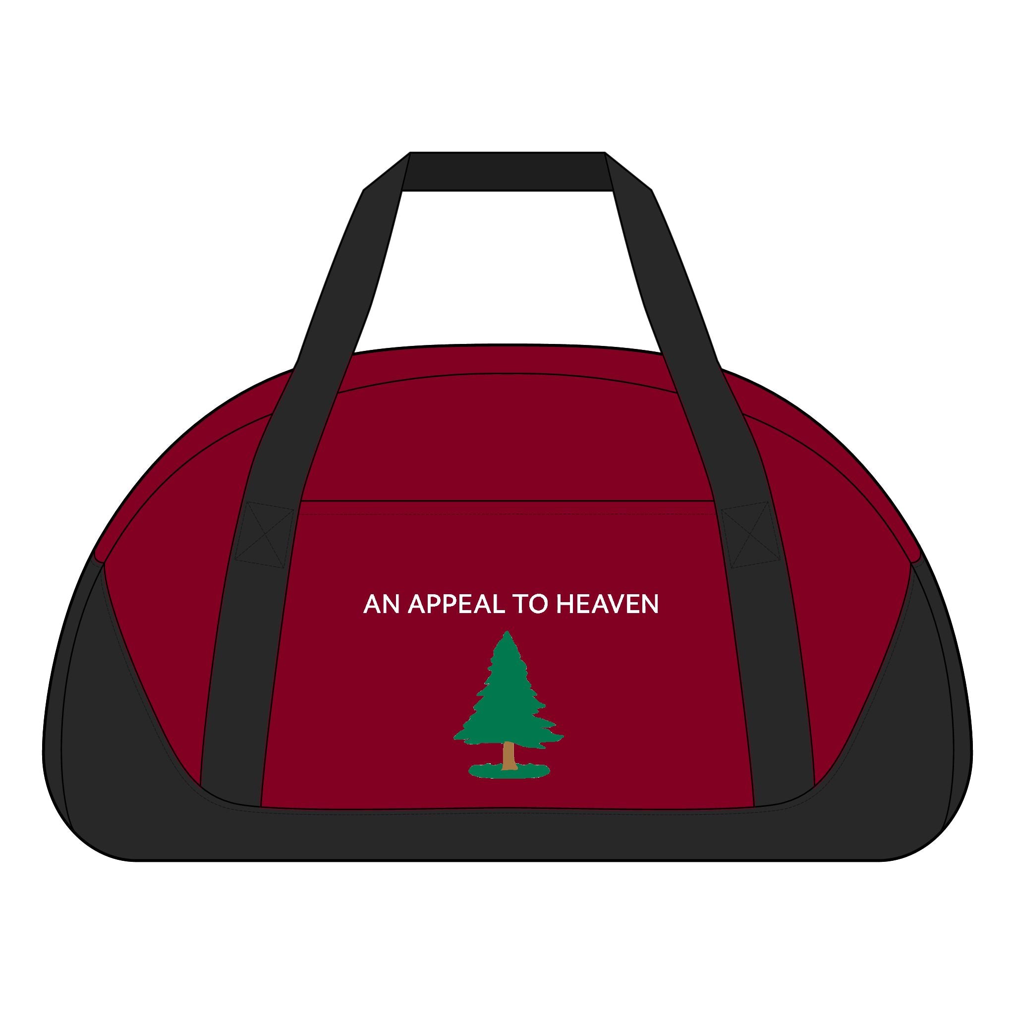 A simple, capable duffel for the traveler, the lifter, and the quiet wanderer. This 18-inch bag carries more than gear. It carries the reminder that freedom begins above the reach of kings. A small embroidered evergreen sits on the front panel. Clean. Intentional. A nod to the old pine banner and the people who trusted heaven over rulers.