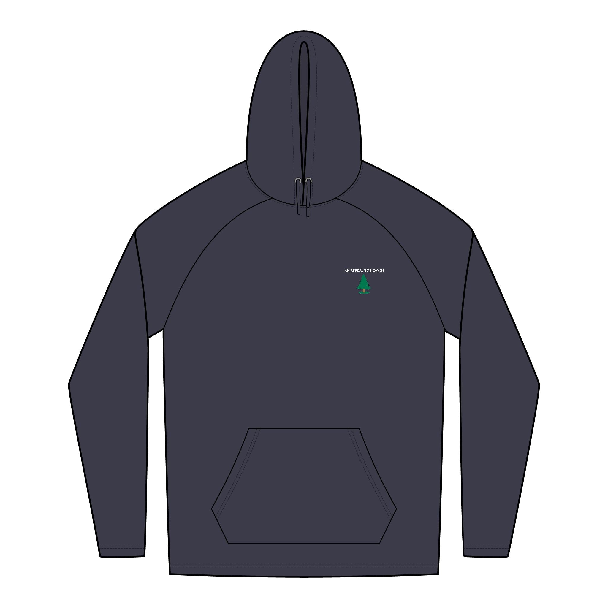 A soft, easy layer with a quiet nod to first principles. This classic-fit hoodie wears like a favorite trail companion. Breathable tri-blend fabric keeps things light and comfortable, moving moisture during activity while still feeling gentle against the skin. The small embroidered evergreen sits over the heart, a subtle reminder of the old American belief that freedom begins with the individual.
