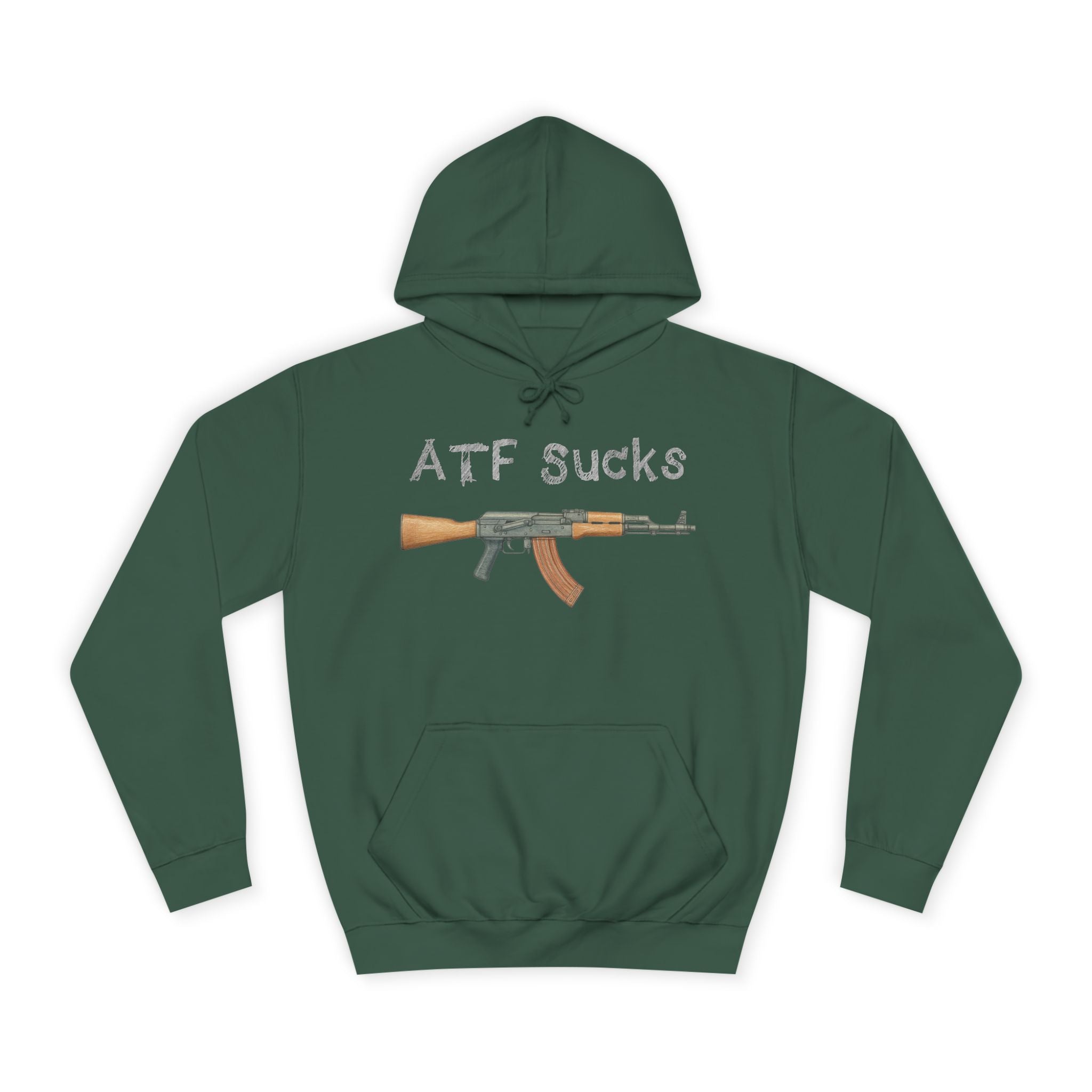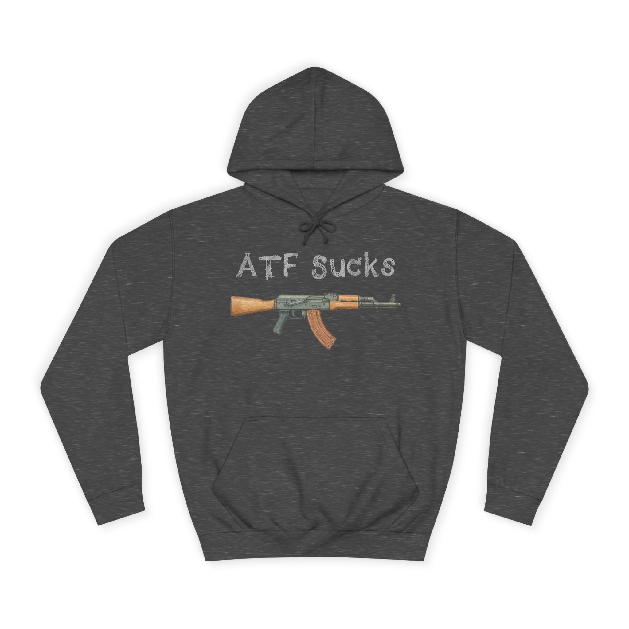Keep warm and make a statement with the ATF Sucks Sketch Hoodie. Built for comfort and attitude, this unisex college hoodie features our hand-drawn rifle sketch printed on a soft cotton-poly blend that feels as good as it looks. Perfect for cool evenings, family gatherings, or those fall days when liberty feels just right.