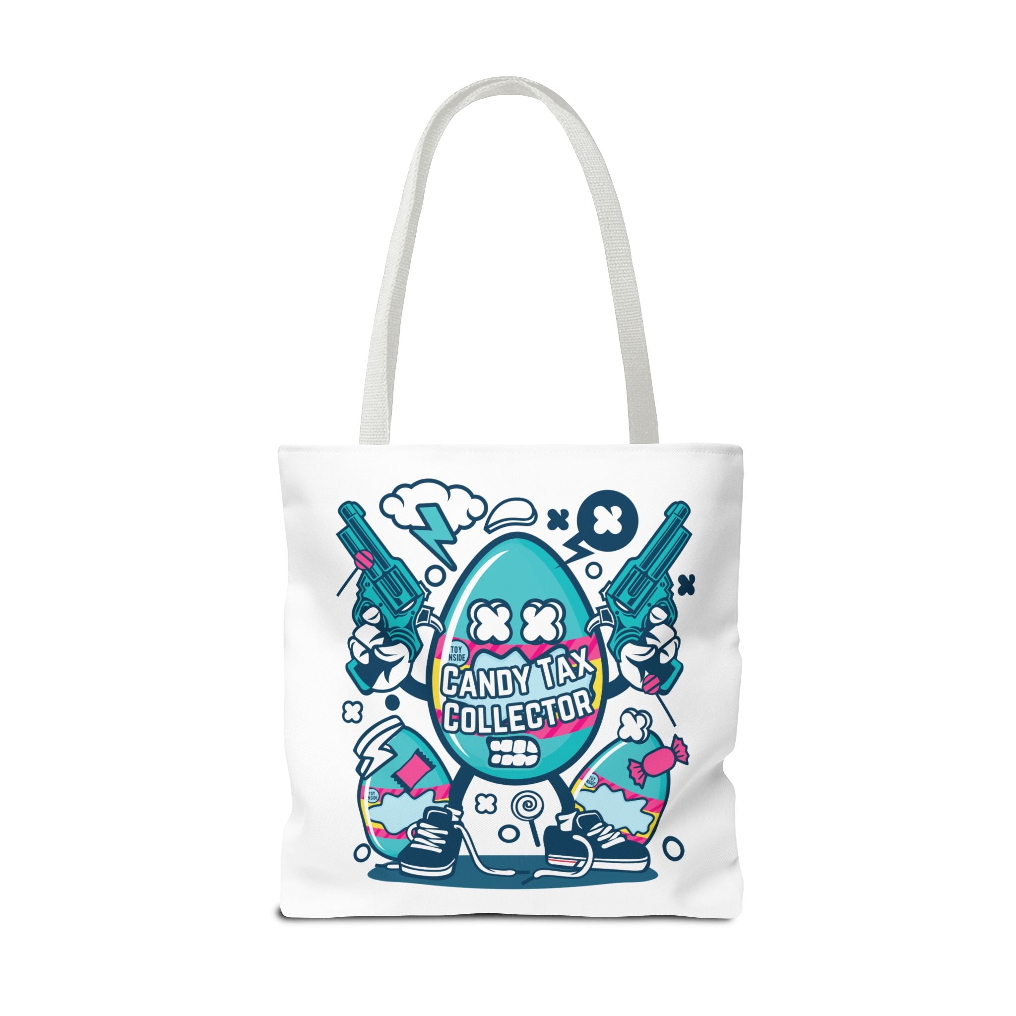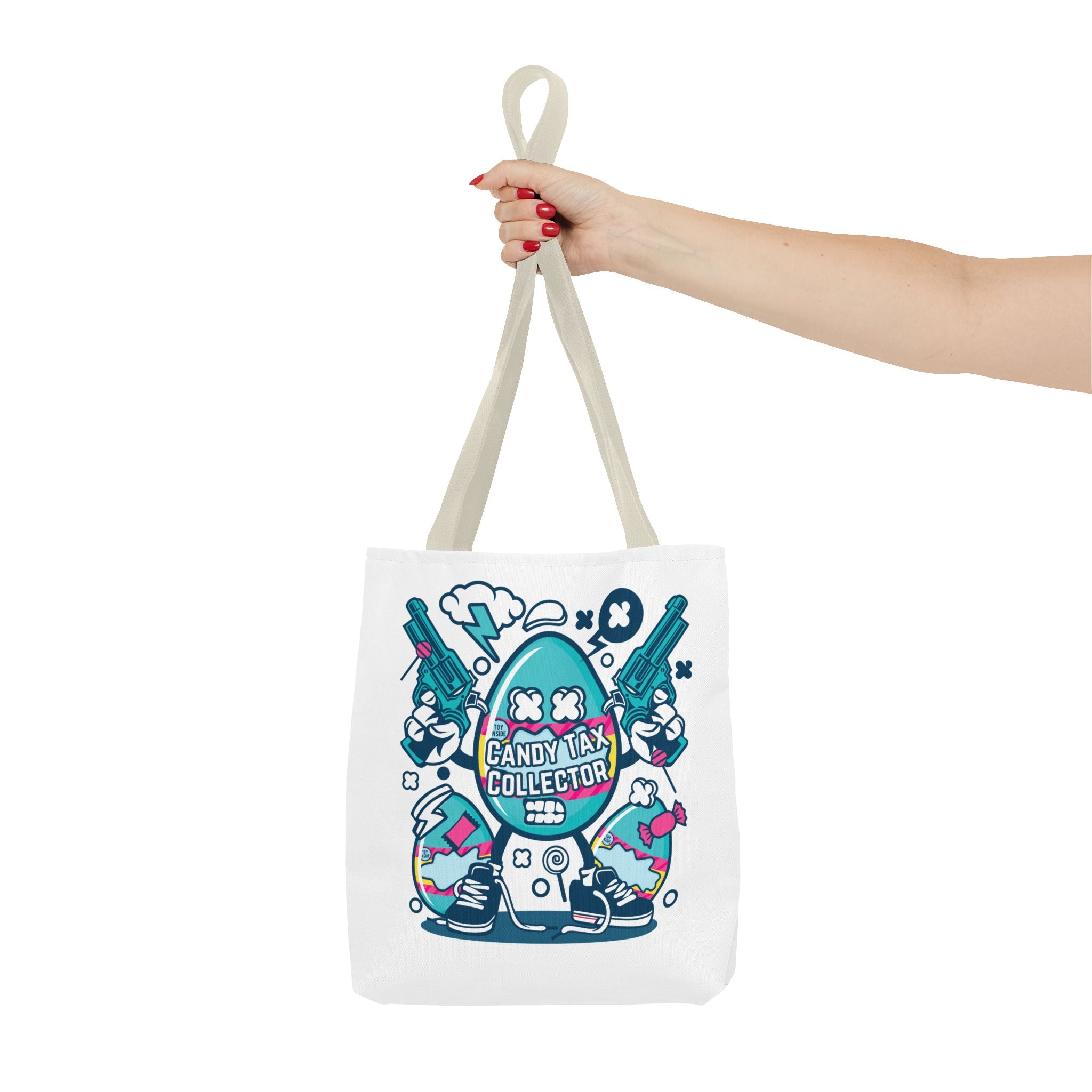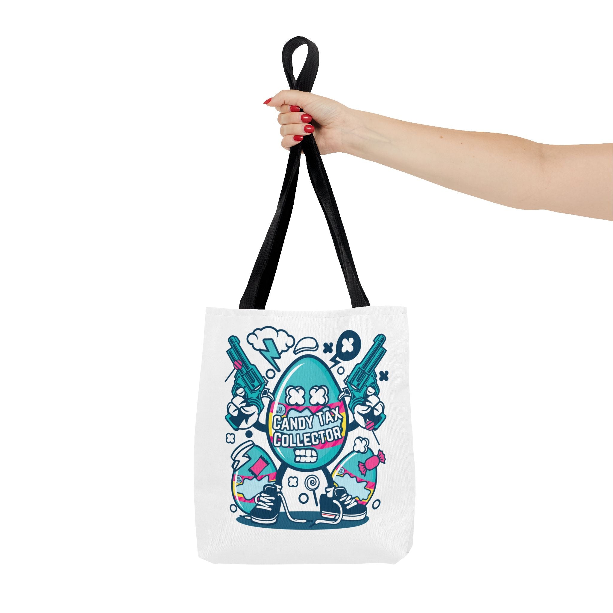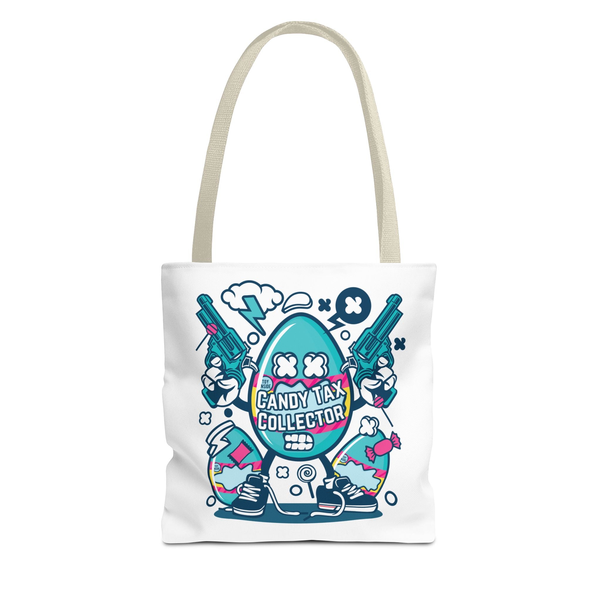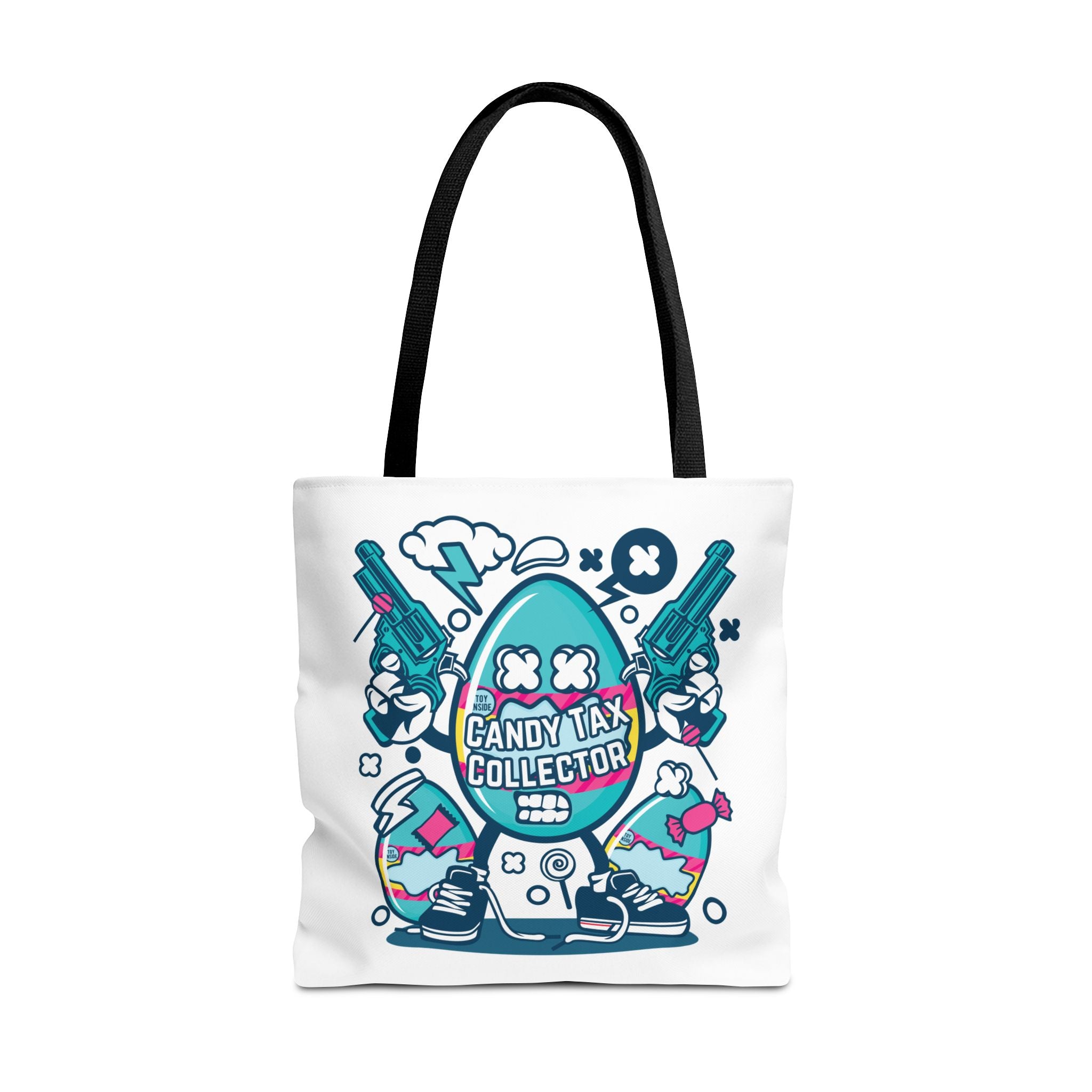 Introducing the Candy Tax Collector Tote Bag—perfect for the self-appointed candy tax enforcer in your life! Featuring a playful design of candy holding pistols, this bag is ready to help you collect your "fair share" of sweets. Available in 3 sizes, this custom-printed tote bag adds both function and fun to your candy collection duties. Whether it's trick-or-treating or "taxing" your family’s candy stash, this bag is your ultimate sidekick.
