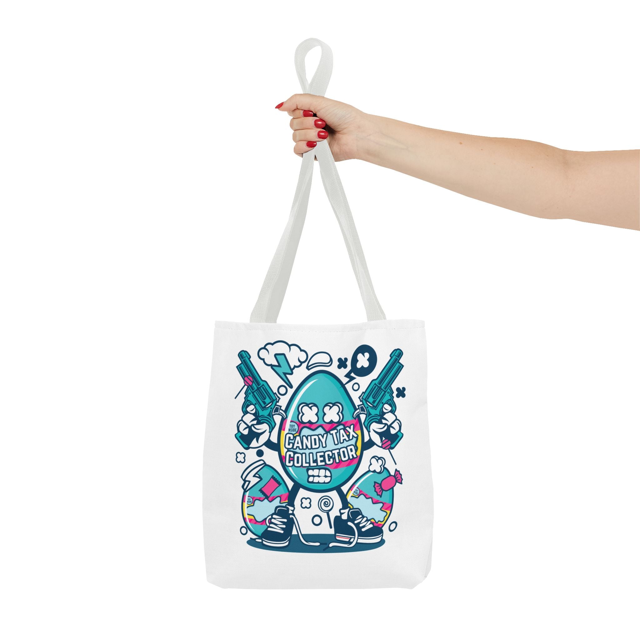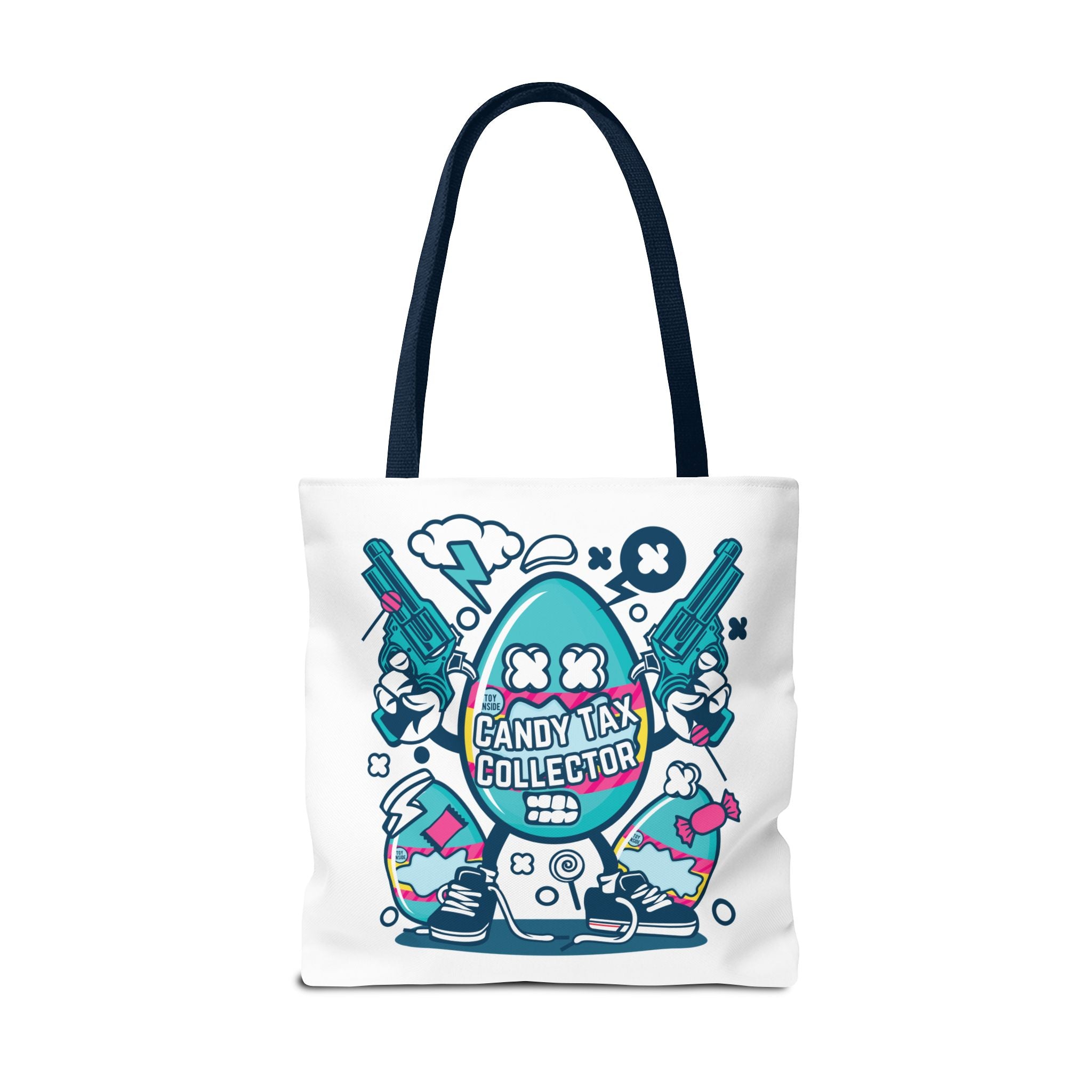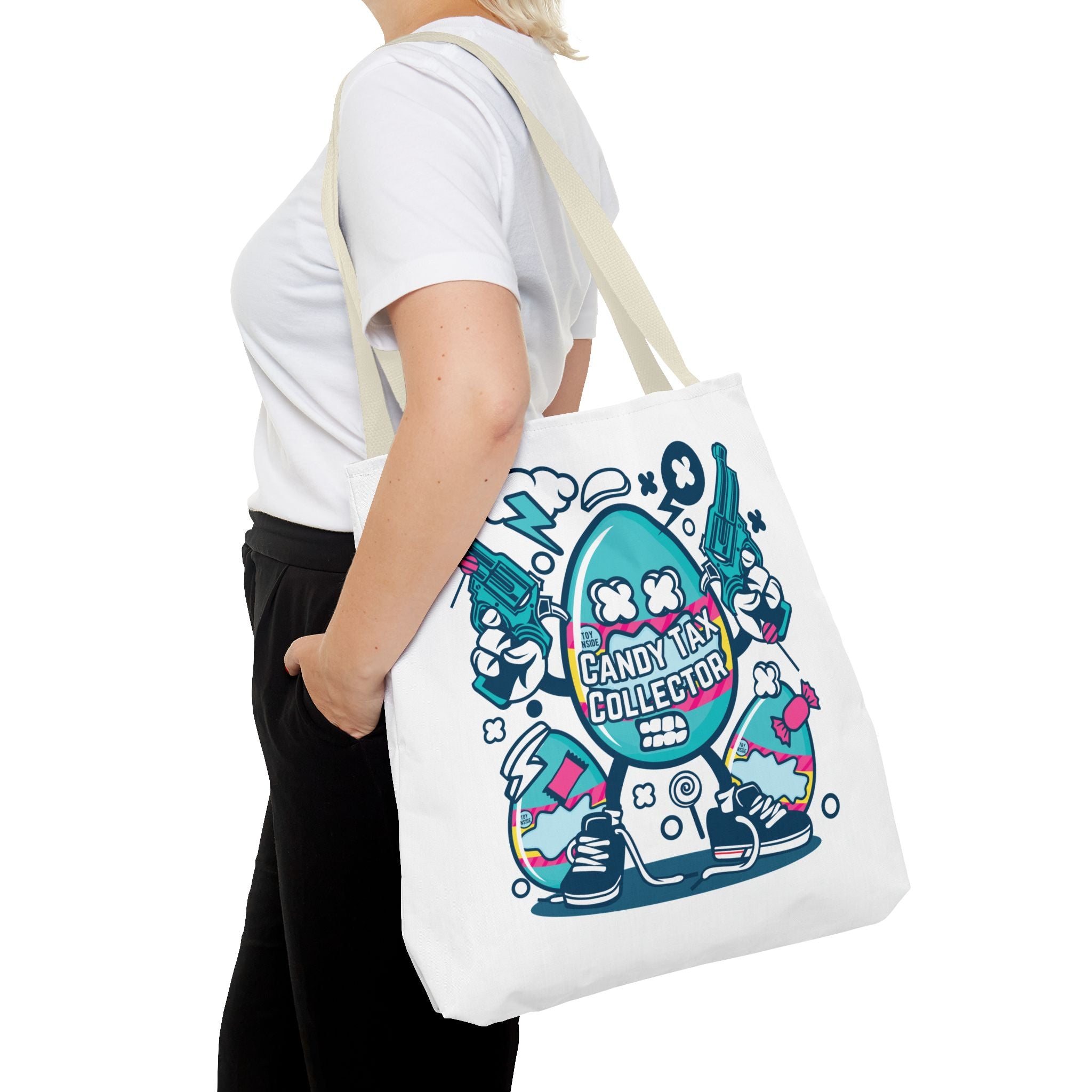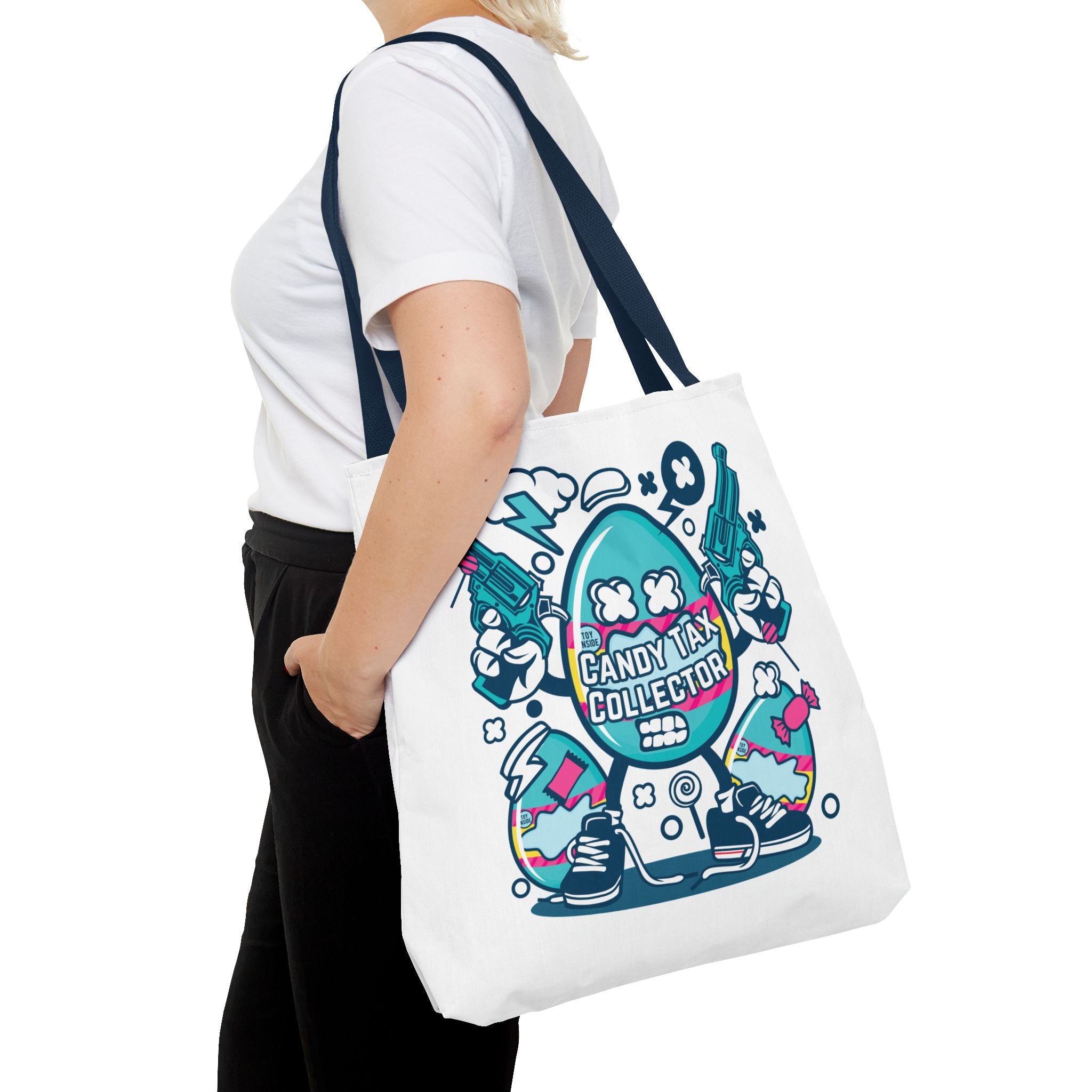 Introducing the Candy Tax Collector Tote Bag—perfect for the self-appointed candy tax enforcer in your life! Featuring a playful design of candy holding pistols, this bag is ready to help you collect your "fair share" of sweets. Available in 3 sizes, this custom-printed tote bag adds both function and fun to your candy collection duties. Whether it's trick-or-treating or "taxing" your family’s candy stash, this bag is your ultimate sidekick.