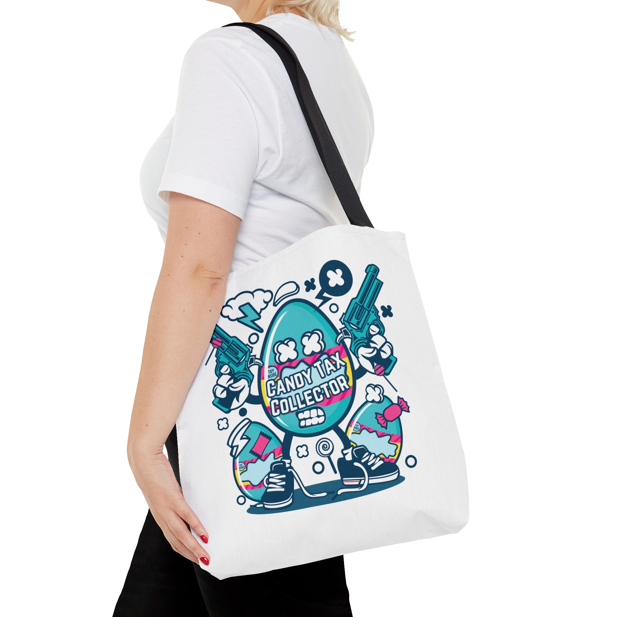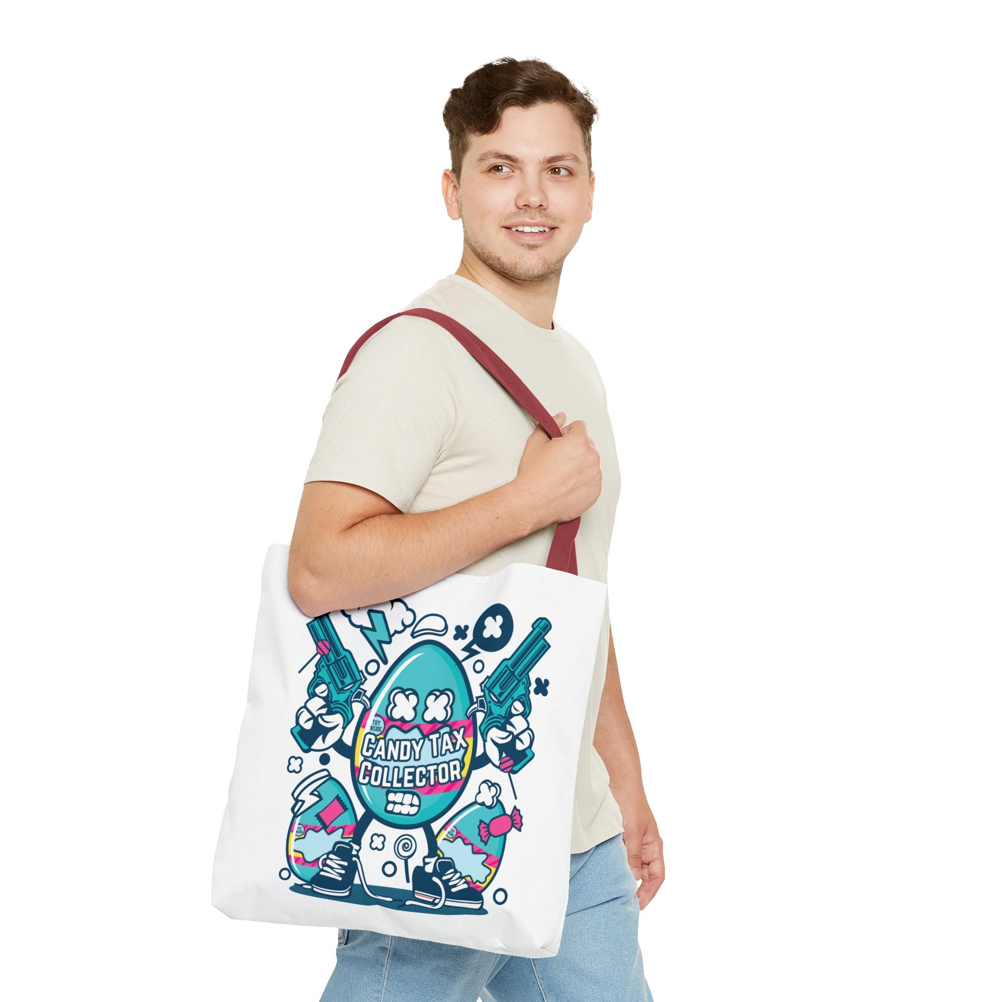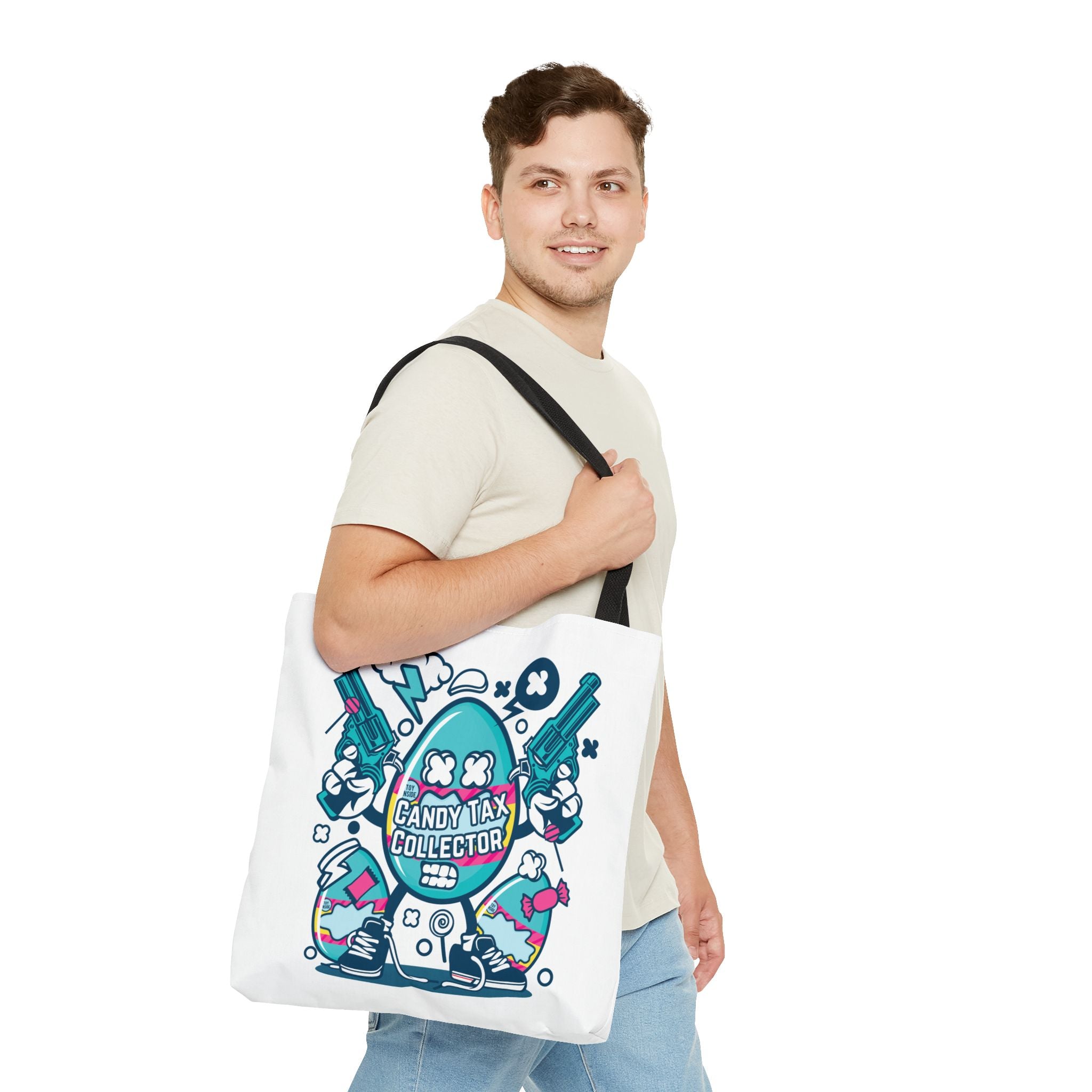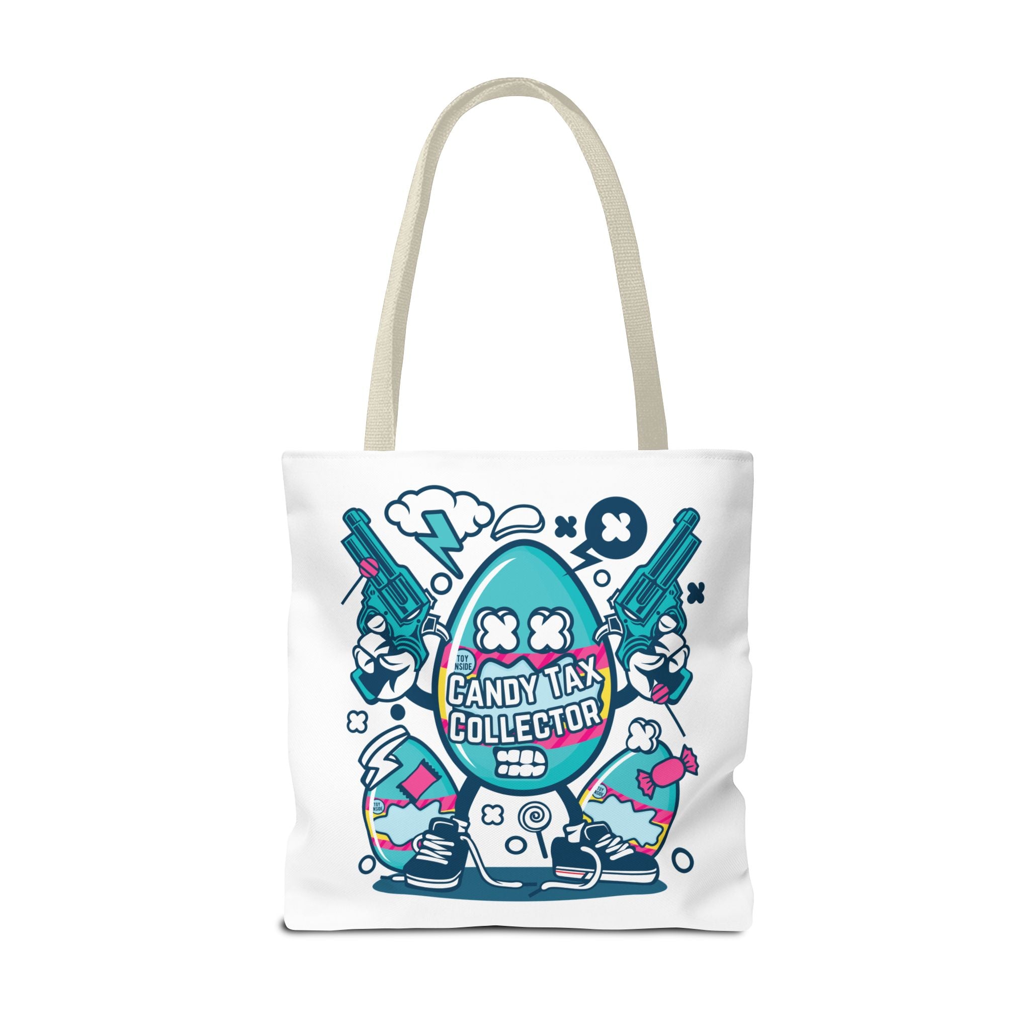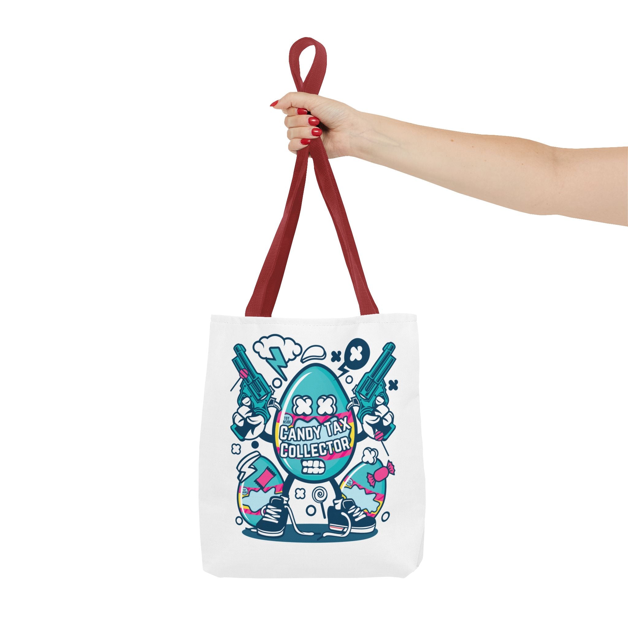 Introducing the Candy Tax Collector Tote Bag—perfect for the self-appointed candy tax enforcer in your life! Featuring a playful design of candy holding pistols, this bag is ready to help you collect your "fair share" of sweets. Available in 3 sizes, this custom-printed tote bag adds both function and fun to your candy collection duties. Whether it's trick-or-treating or "taxing" your family’s candy stash, this bag is your ultimate sidekick.