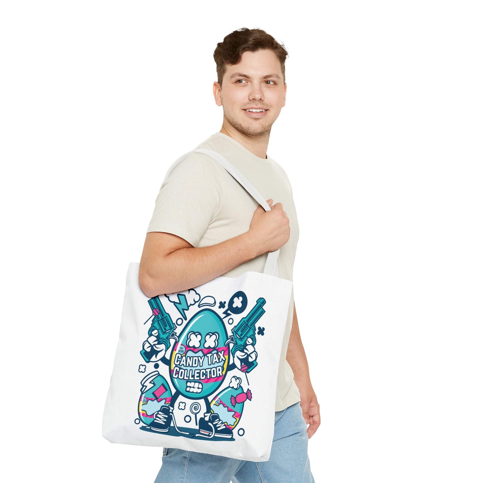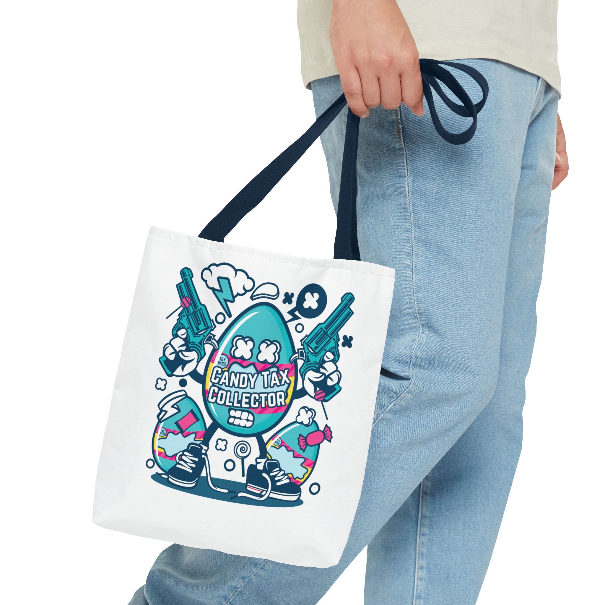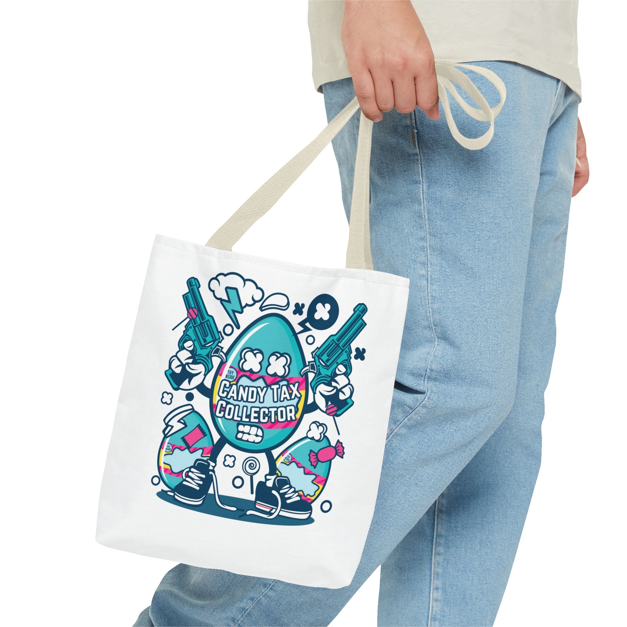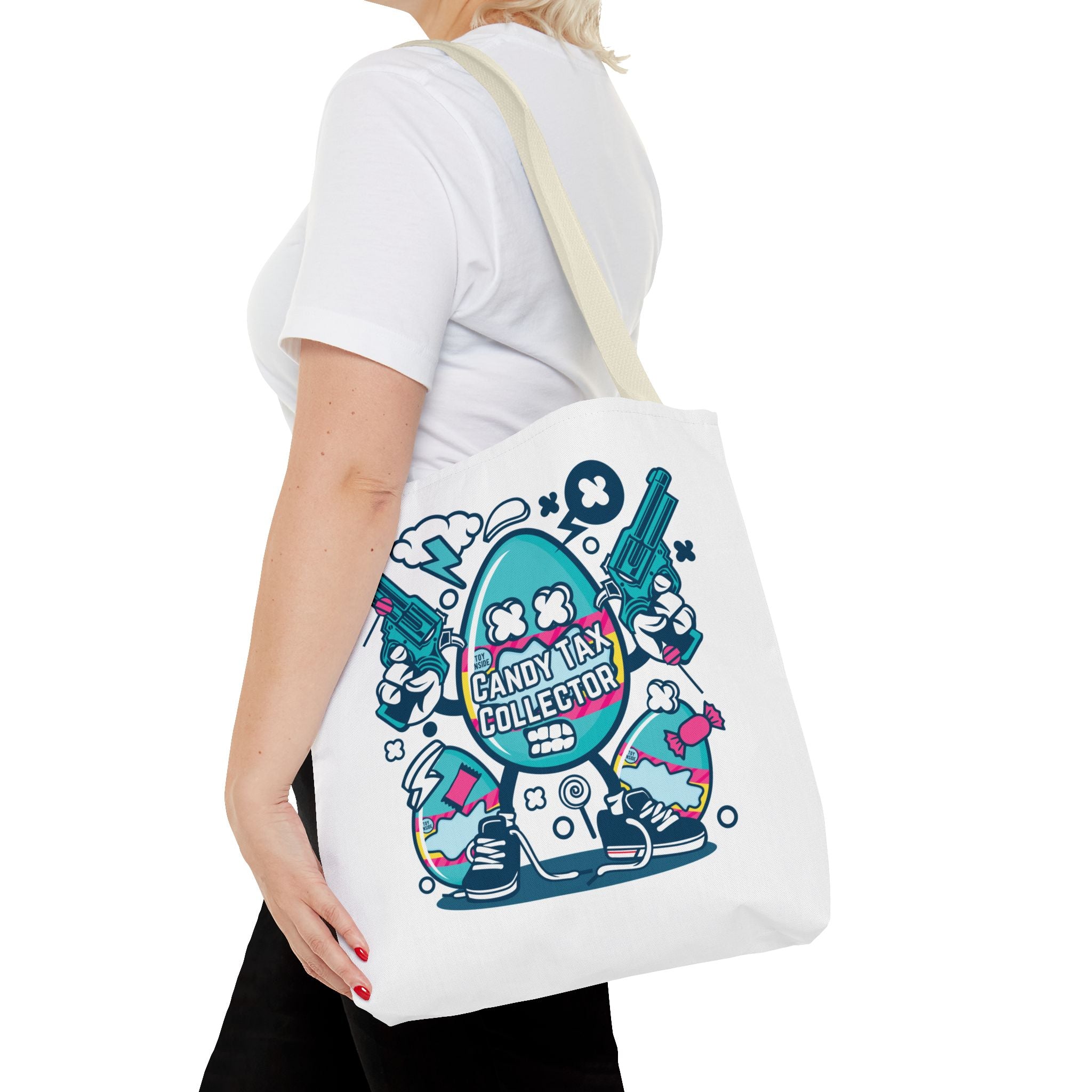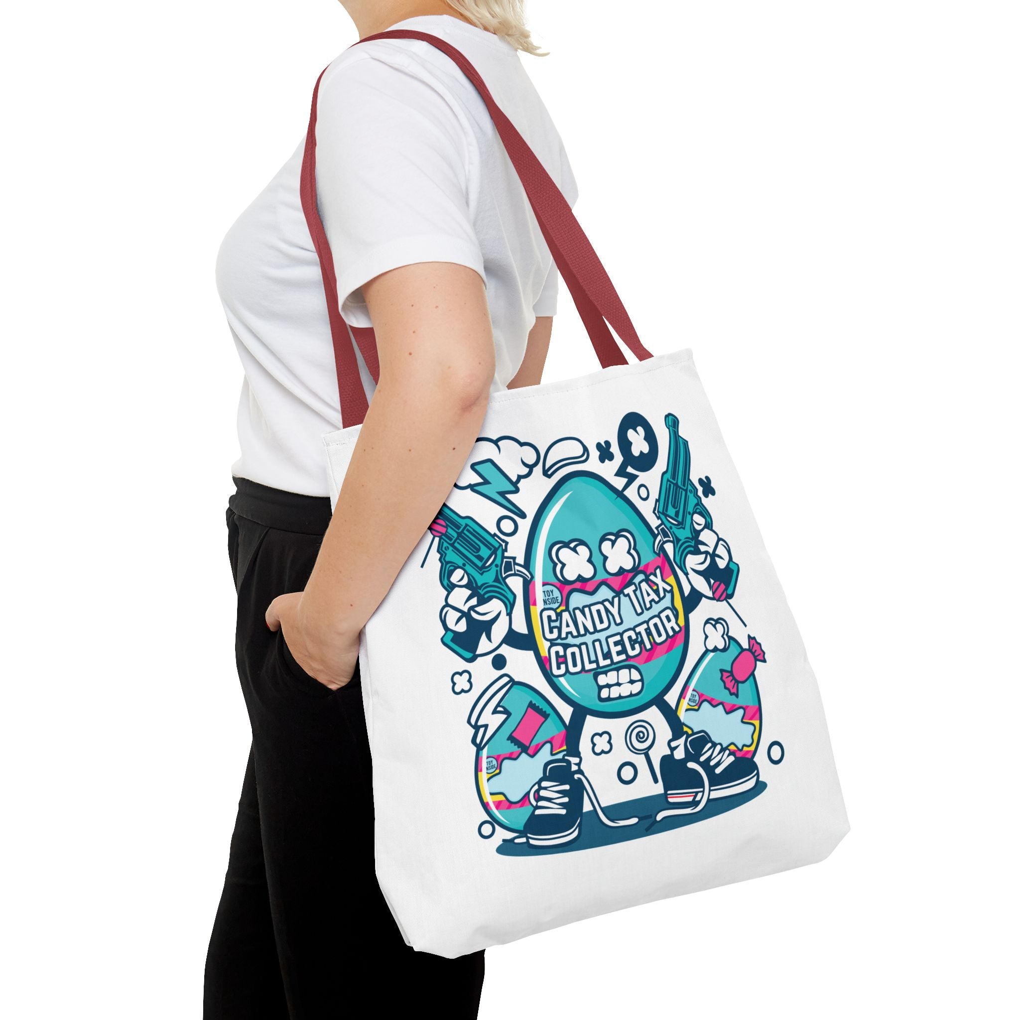 Introducing the Candy Tax Collector Tote Bag—perfect for the self-appointed candy tax enforcer in your life! Featuring a playful design of candy holding pistols, this bag is ready to help you collect your "fair share" of sweets. Available in 3 sizes, this custom-printed tote bag adds both function and fun to your candy collection duties. Whether it's trick-or-treating or "taxing" your family’s candy stash, this bag is your ultimate sidekick.