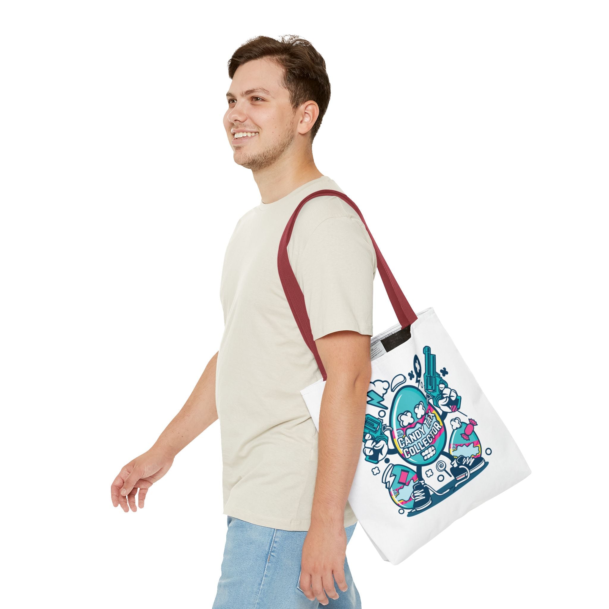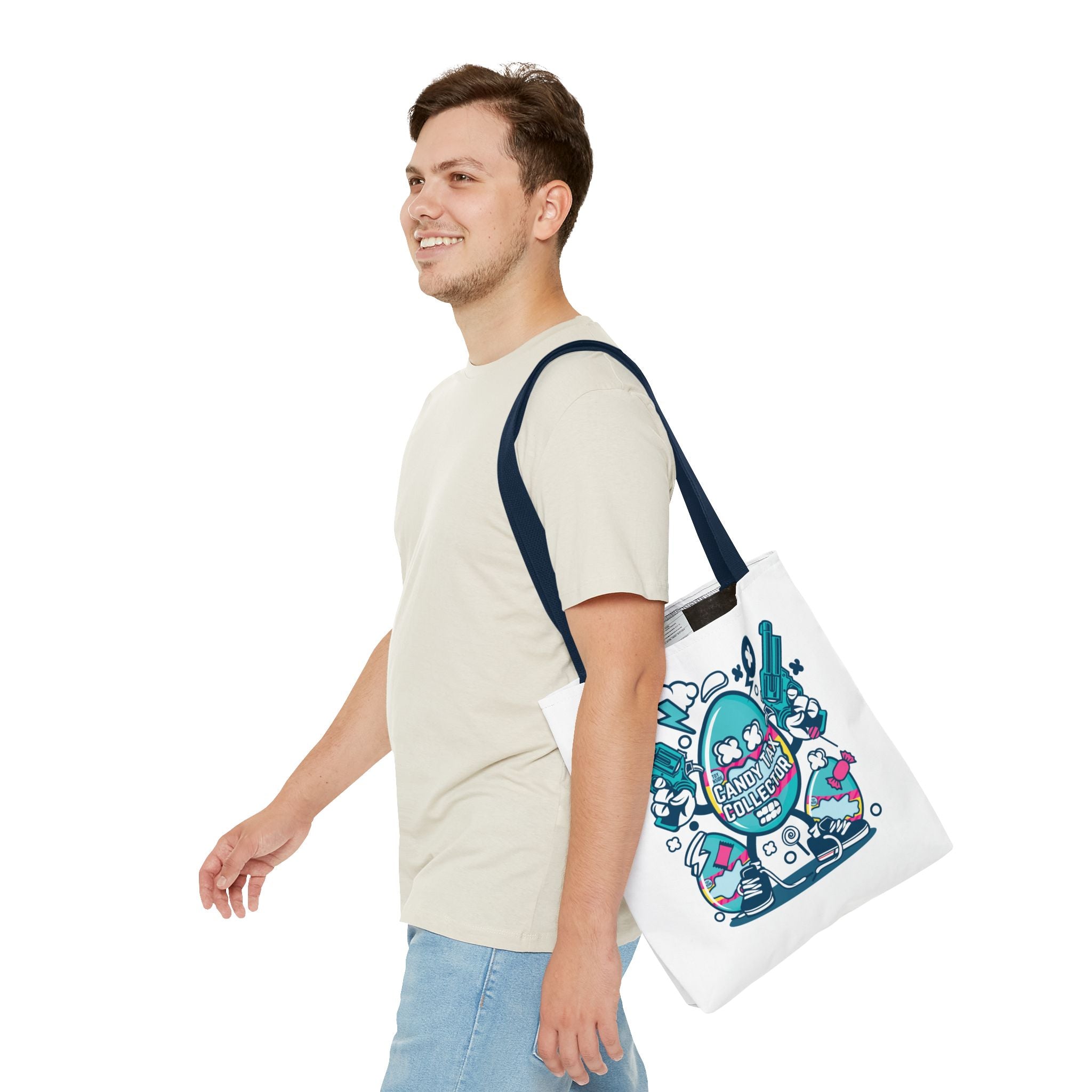 Made with 100% spun polyester and featuring double-stitched seams, cotton webbing straps, and a nonwoven laminate lining, this bag is built for durability. The vibrant all-over print is created using dye sublimation, giving it high-end, eye-catching visuals that match its humorous theme. Choose from 5 different handle colors to fit your style and get ready to "collect" in style.