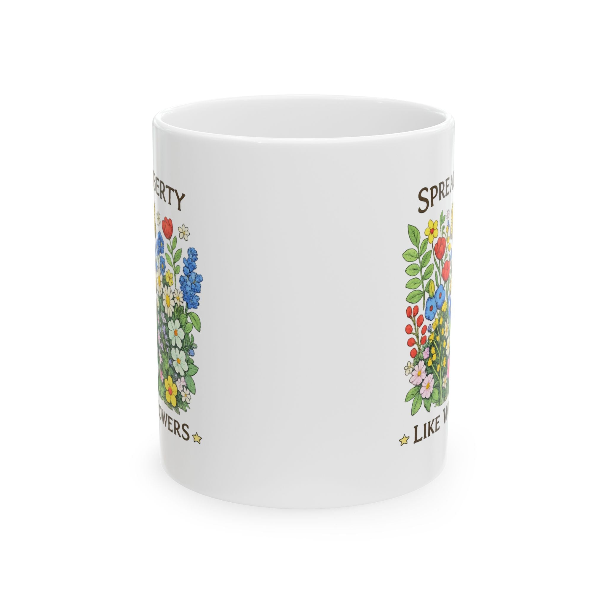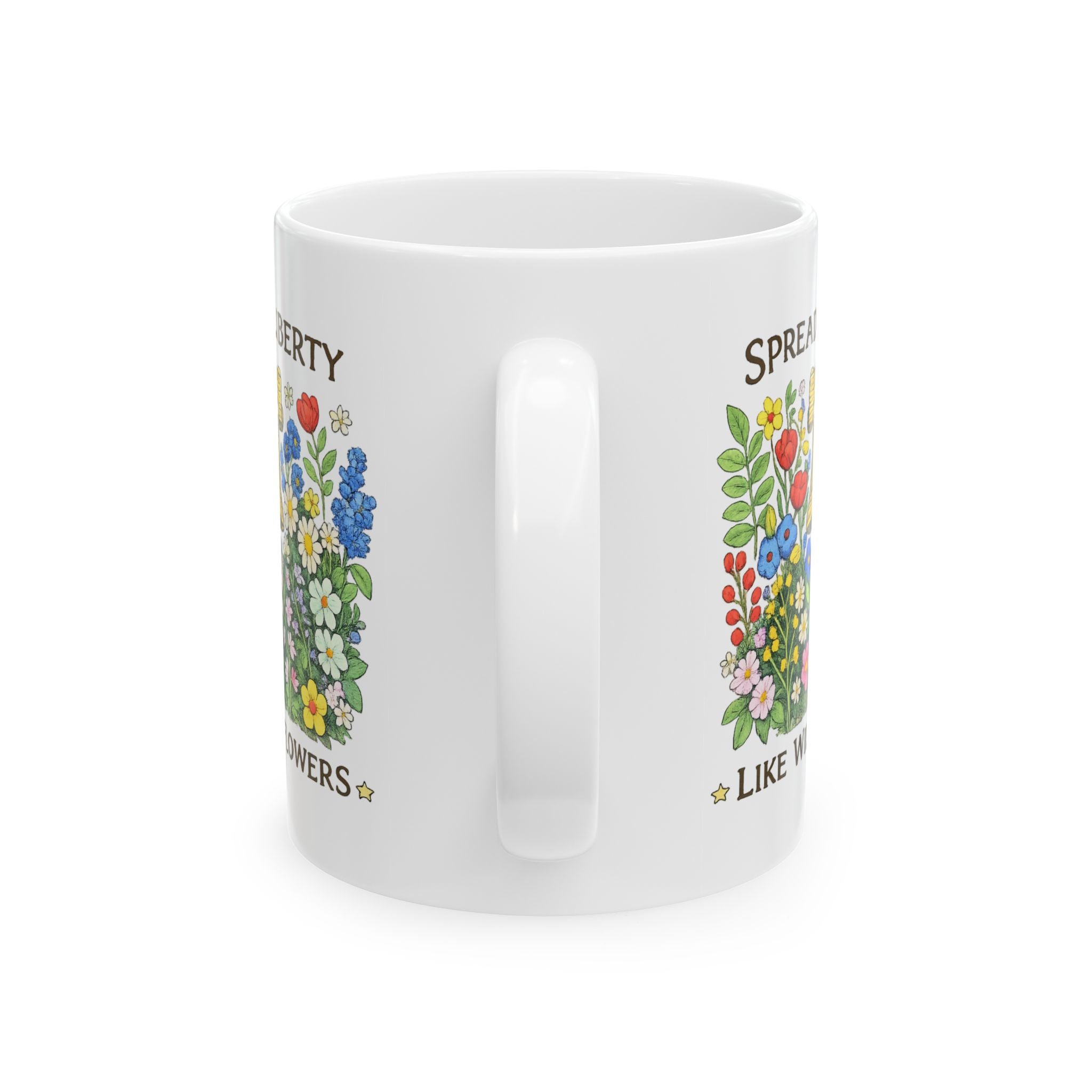 Thomas Jefferson once wrote that "the tree of liberty must be refreshed from time to time," but he might have added that it also needs a good morning coffee to get started. This ceramic mug wraps your favorite brew in a meadow of vibrant wildflowers—a visual reminder that freedom, like nature, flourishes when given room to grow. The design features a cascade of botanical blooms in rich, saturated colors that pop against glossy white ceramic, turning your daily coffee ritual into a small celebration of liberty and natural beauty.