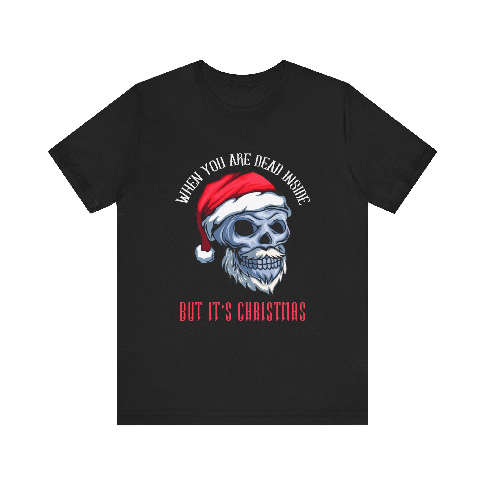 For those who love the season but still feel a little dead inside, this black t-shirt says it all! Featuring a bold skull rocking a Santa hat and the hilariously relatable phrase, "When you are dead inside but it’s Christmas," this shirt perfectly captures your festive yet sarcastic spirit.