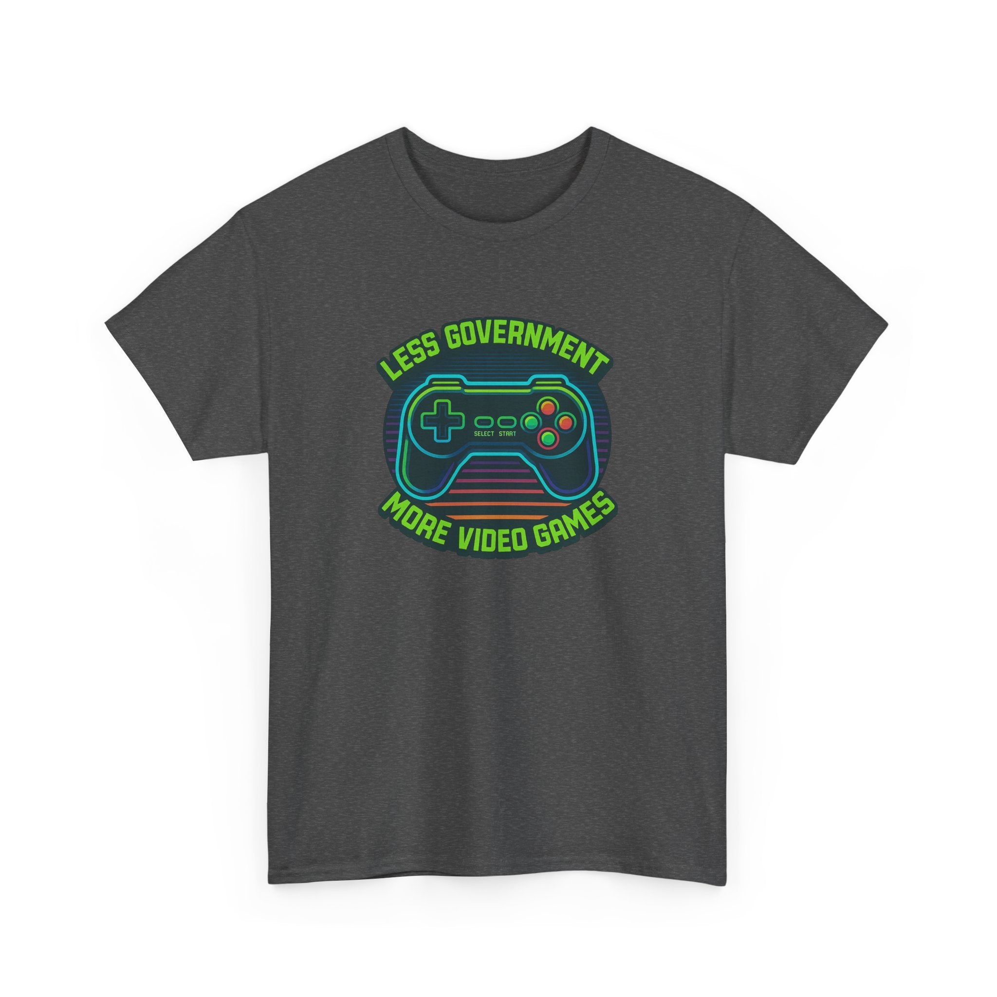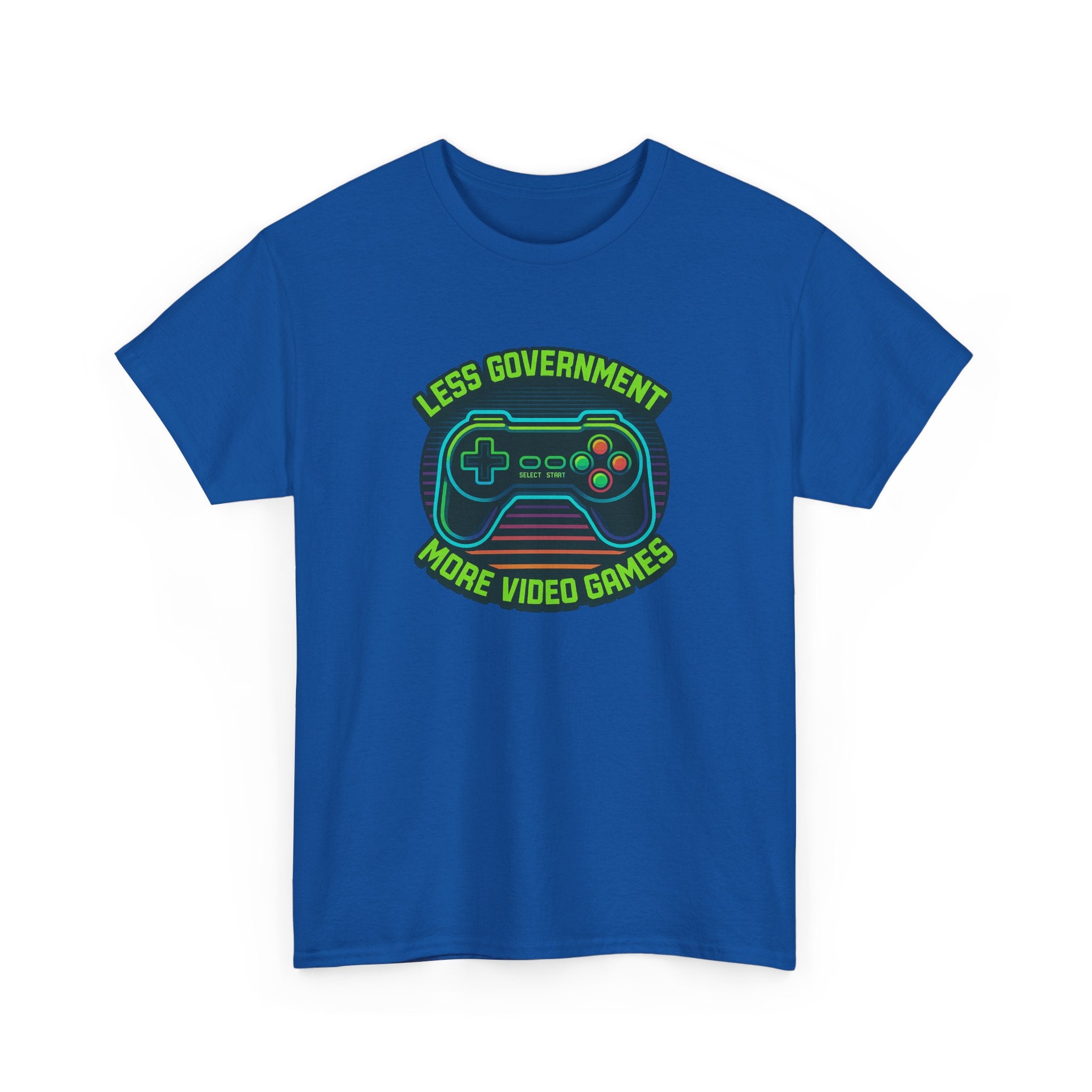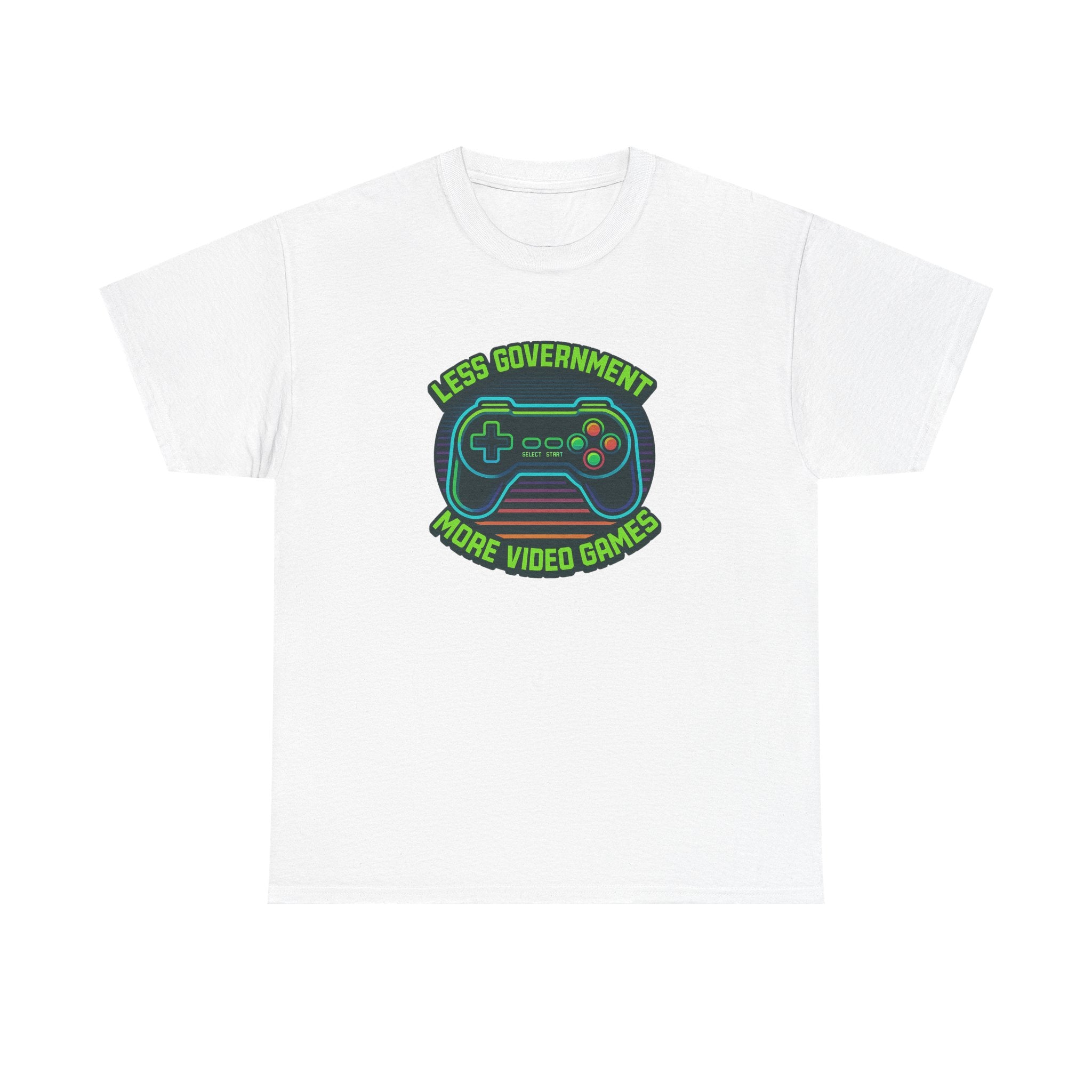 Cheeky Libertarian Gaming Message: "Less Government, More Video Games" is more than a slogan—it's a lifestyle philosophy. It speaks to gamers who value personal freedom, limited government interference, and the right to spend their time and money as they see fit. It's political commentary with a playful twist.