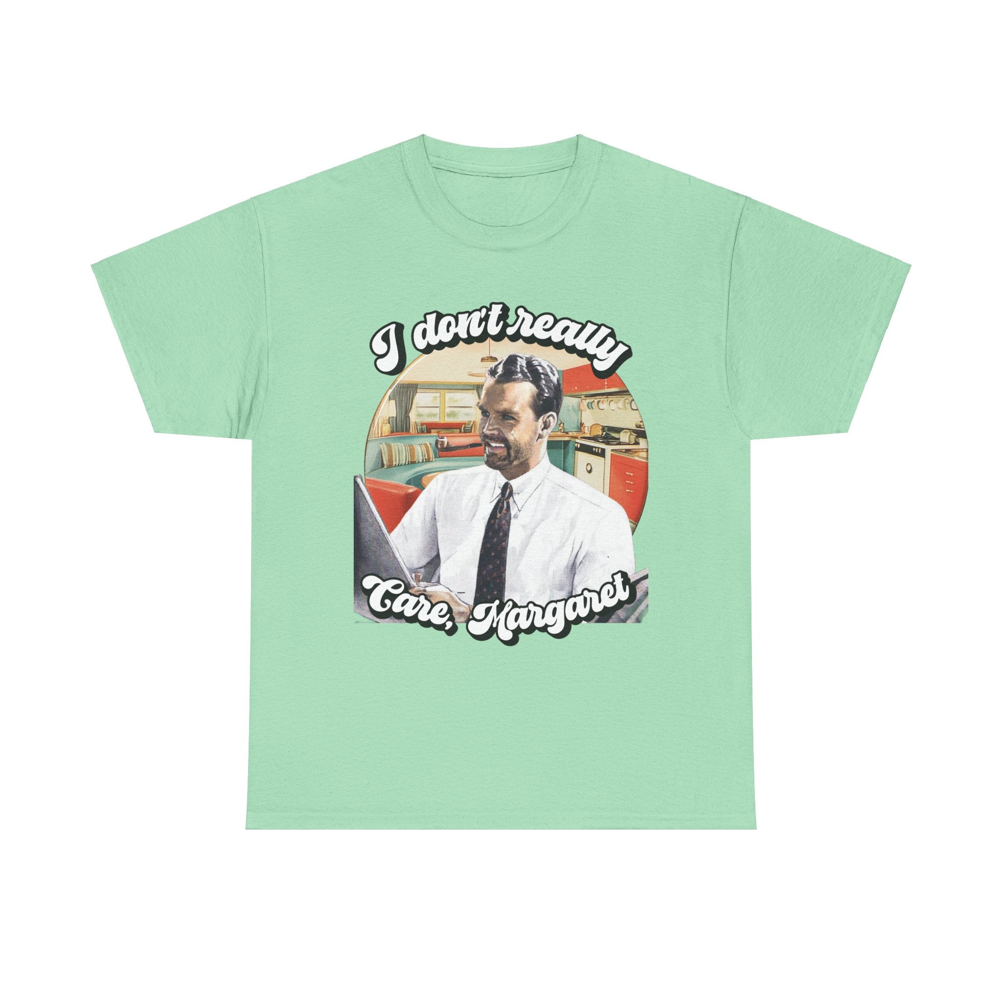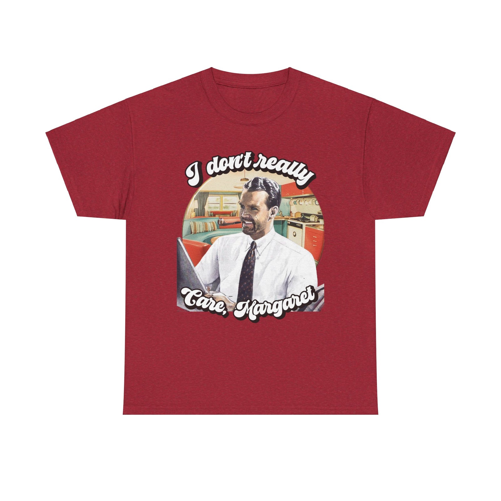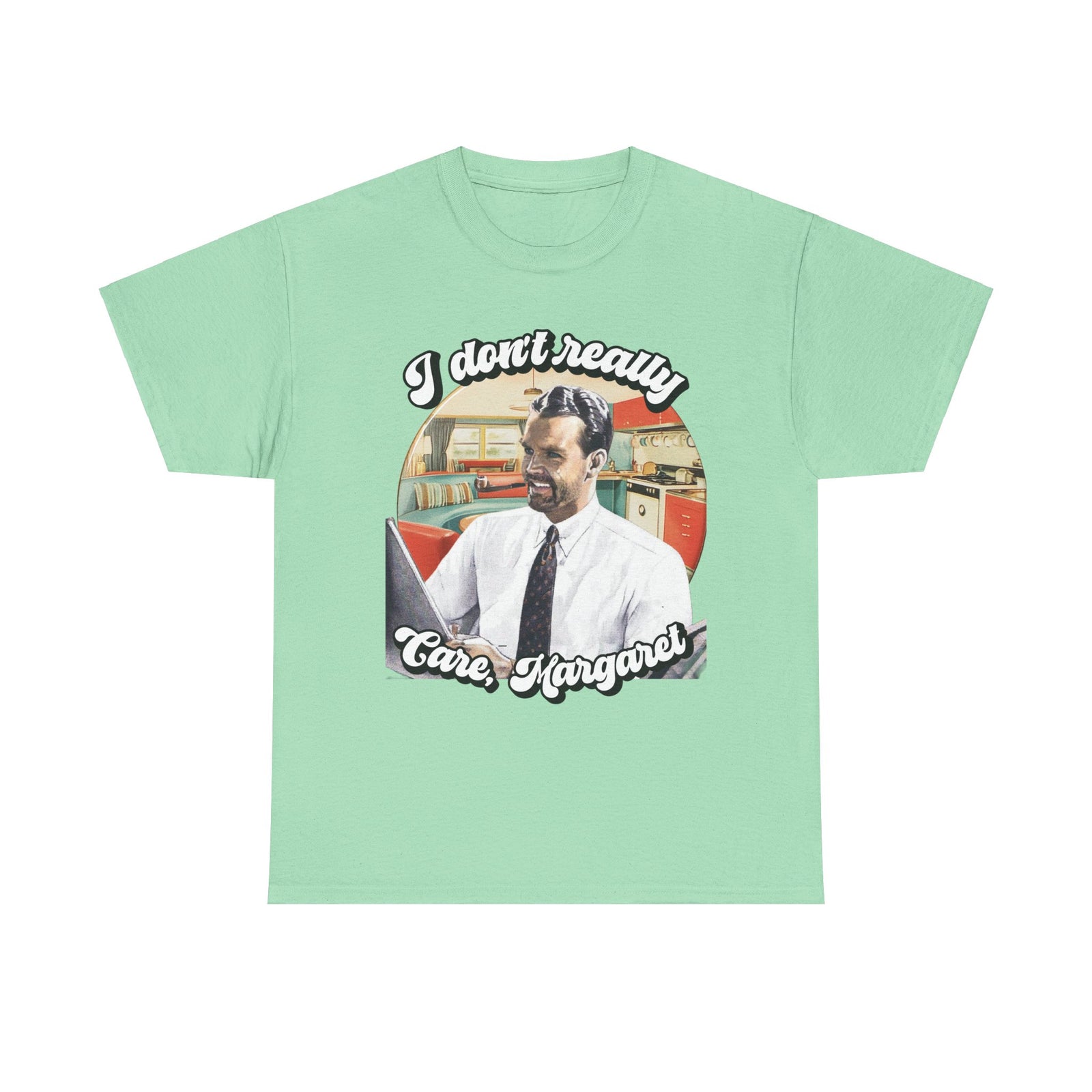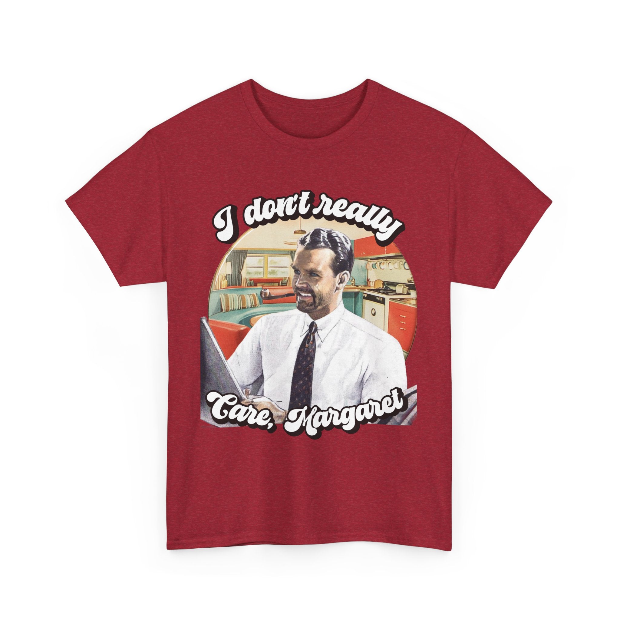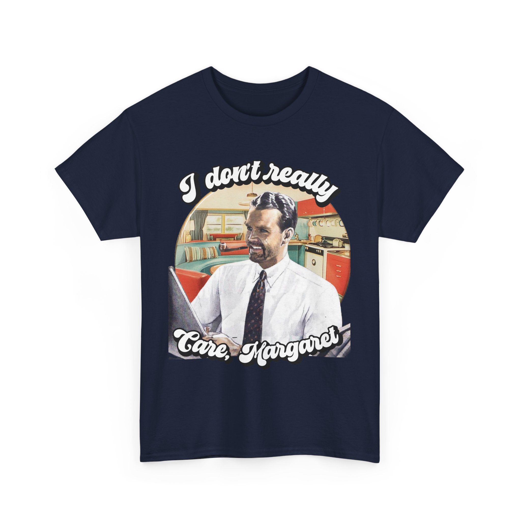 So, if you're looking to express your inner rebel with a cause, this "I Don't Care, Margaret" t-shirt is your new best friend, a real cool cat of a shirt that says you're not just following the crowd but leading the parade with style and a dash of '50s wit!
