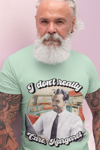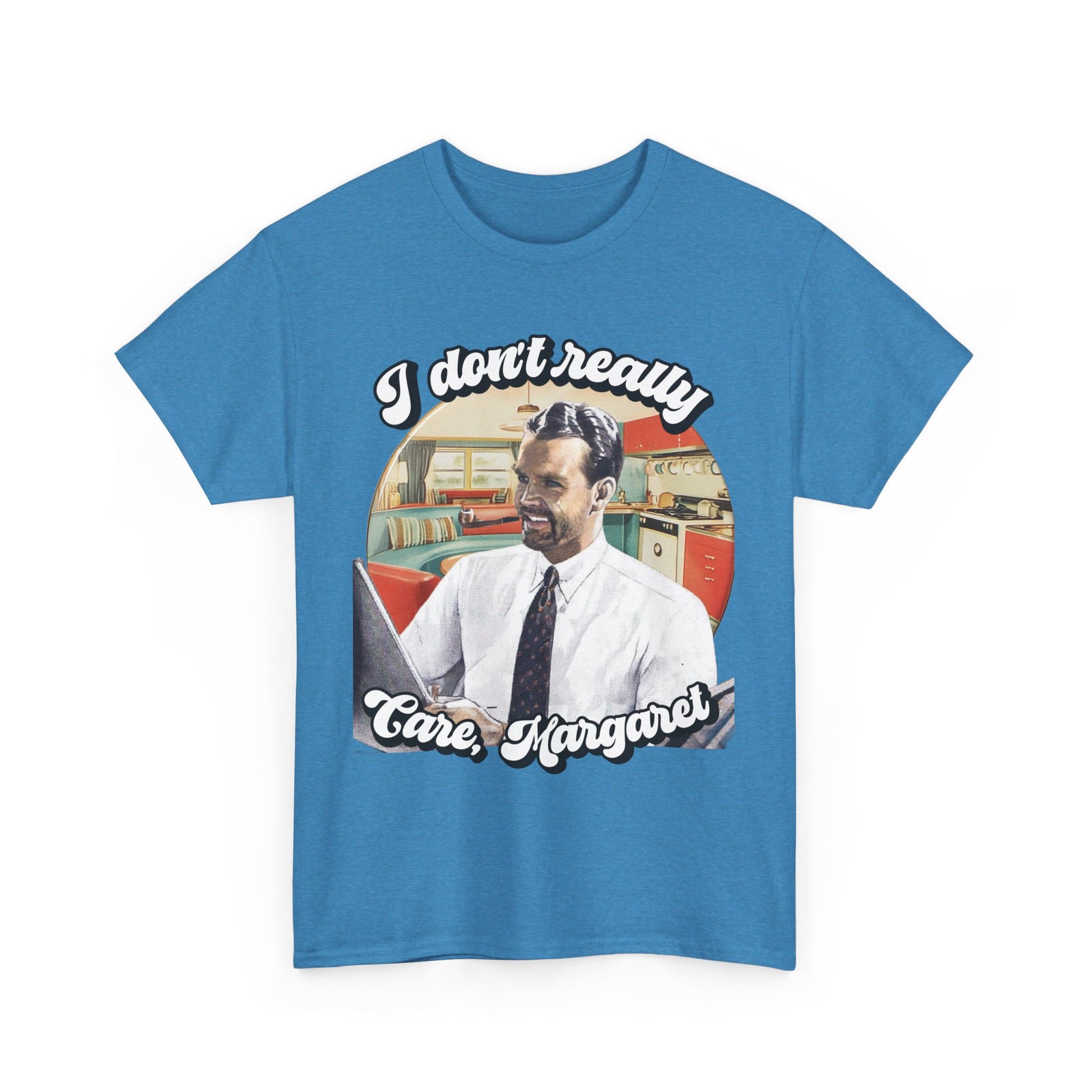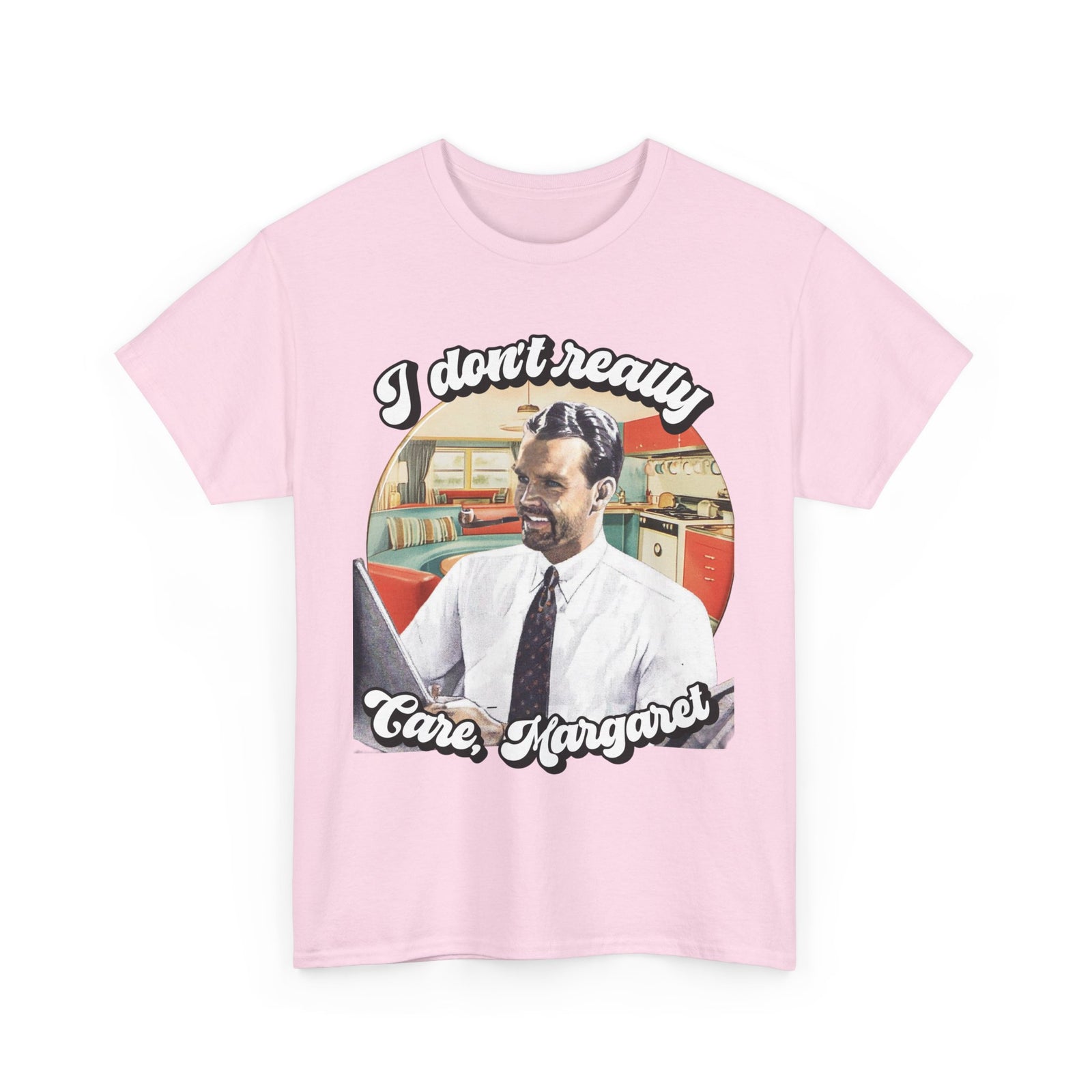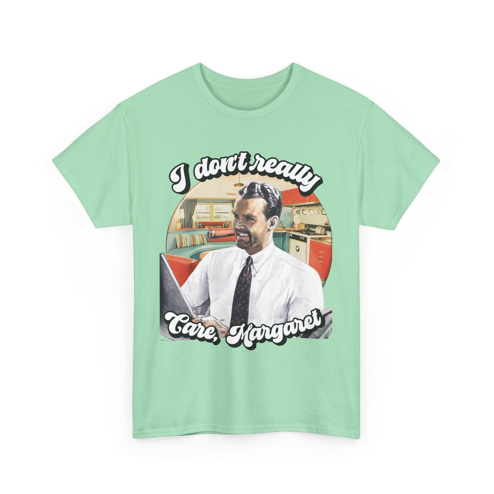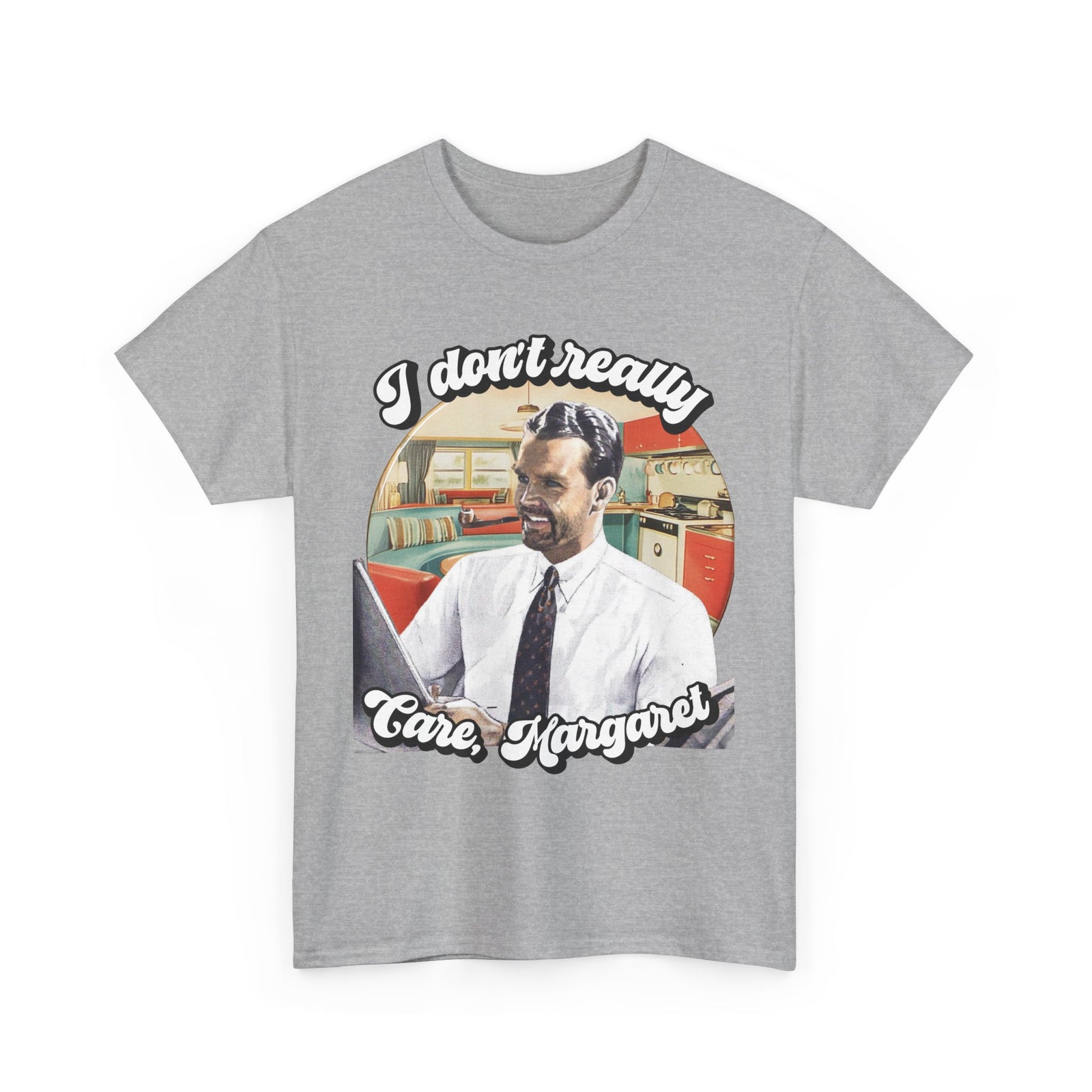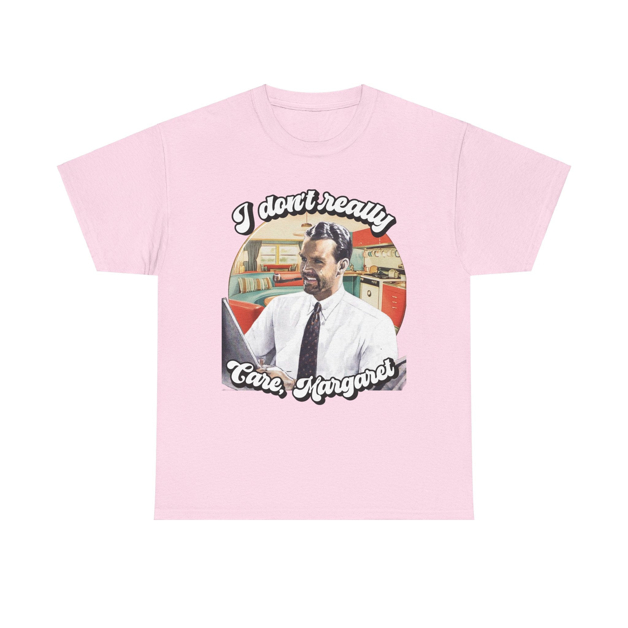 So, if you're looking to express your inner rebel with a cause, this "I Don't Care, Margaret" t-shirt is your new best friend, a real cool cat of a shirt that says you're not just following the crowd but leading the parade with style and a dash of '50s wit!