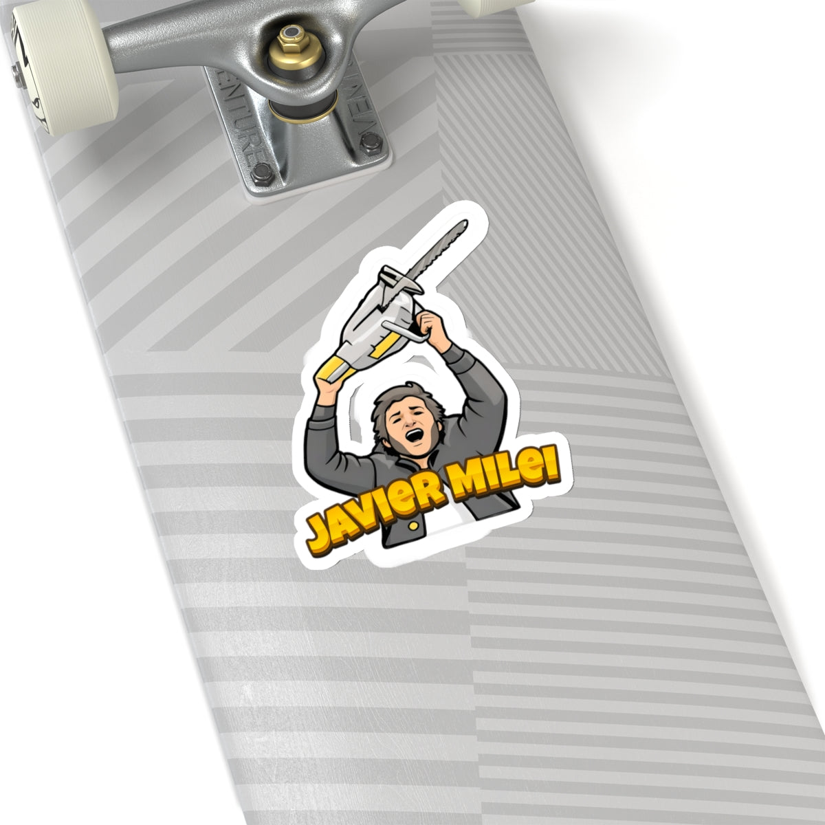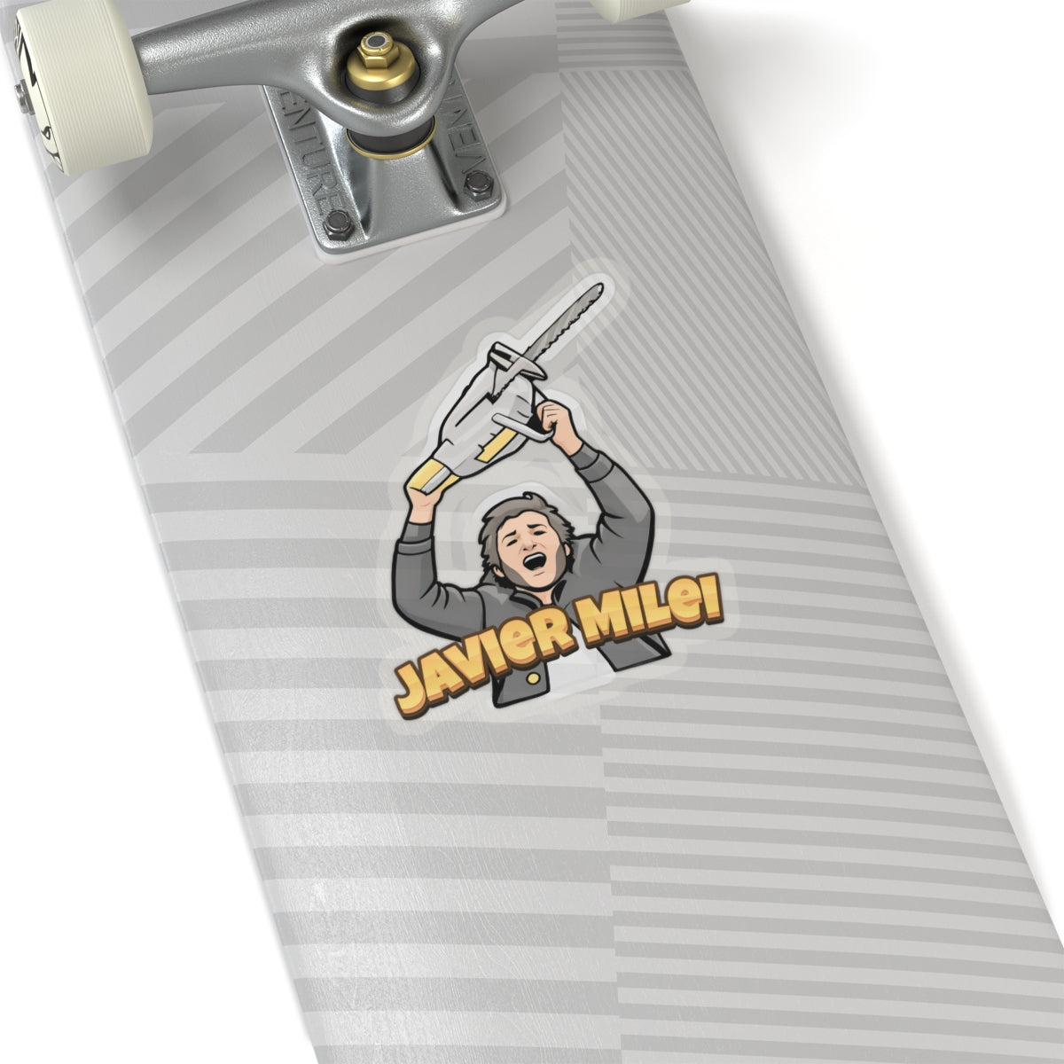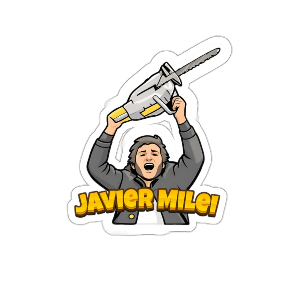 "Unleash the power of freedom with this epic sticker featuring Argentina's electrifying libertarian president, Javier Milei! Known for his fiery speeches and fearless approach to cutting through government waste, Milei is depicted here wielding a chainsaw—his symbol of taking down the bloated state. With bold colors and dynamic action, this sticker captures the thrill of Milei's revolution. Perfect for laptops, notebooks, or anywhere you want to show your support for liberty and the fight against tyranny. Get ready to rev up the chainsaw of change!"