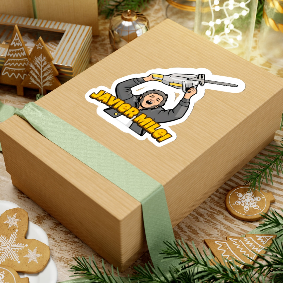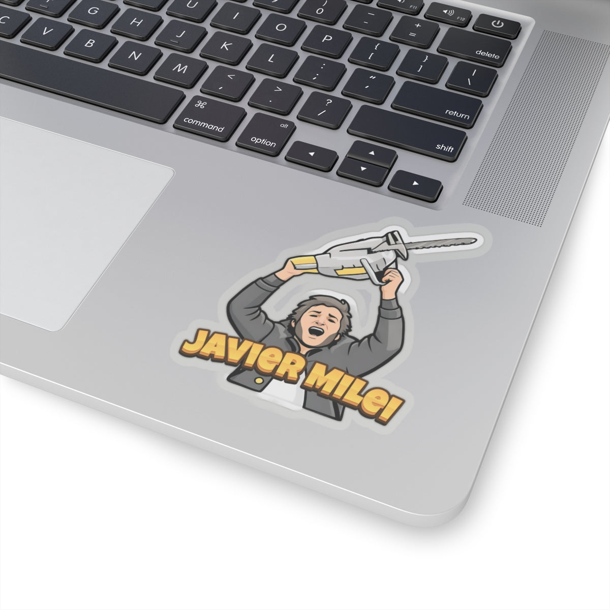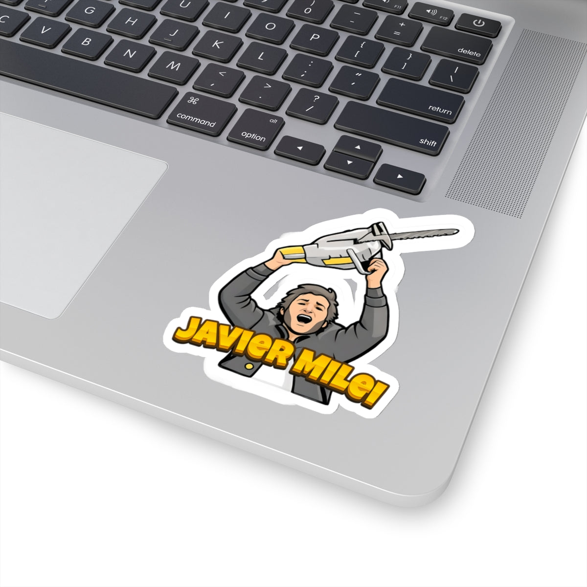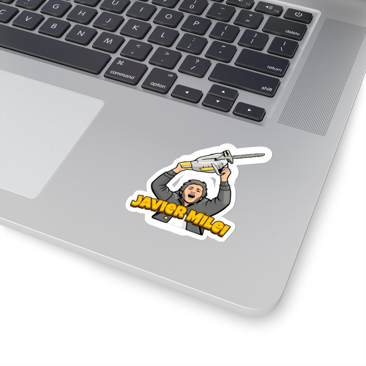 "Unleash the power of freedom with this epic sticker featuring Argentina's electrifying libertarian president, Javier Milei! Known for his fiery speeches and fearless approach to cutting through government waste, Milei is depicted here wielding a chainsaw—his symbol of taking down the bloated state. With bold colors and dynamic action, this sticker captures the thrill of Milei's revolution. Perfect for laptops, notebooks, or anywhere you want to show your support for liberty and the fight against tyranny. Get ready to rev up the chainsaw of change!"