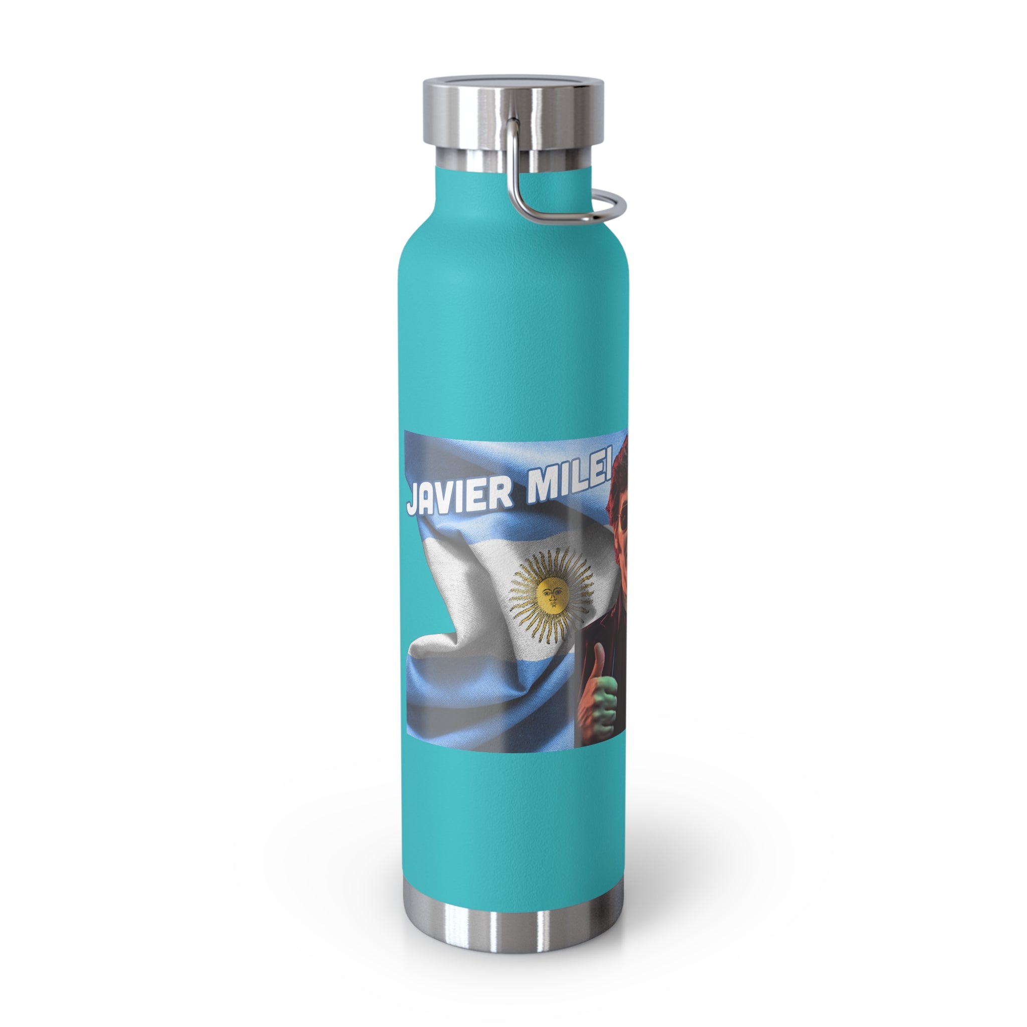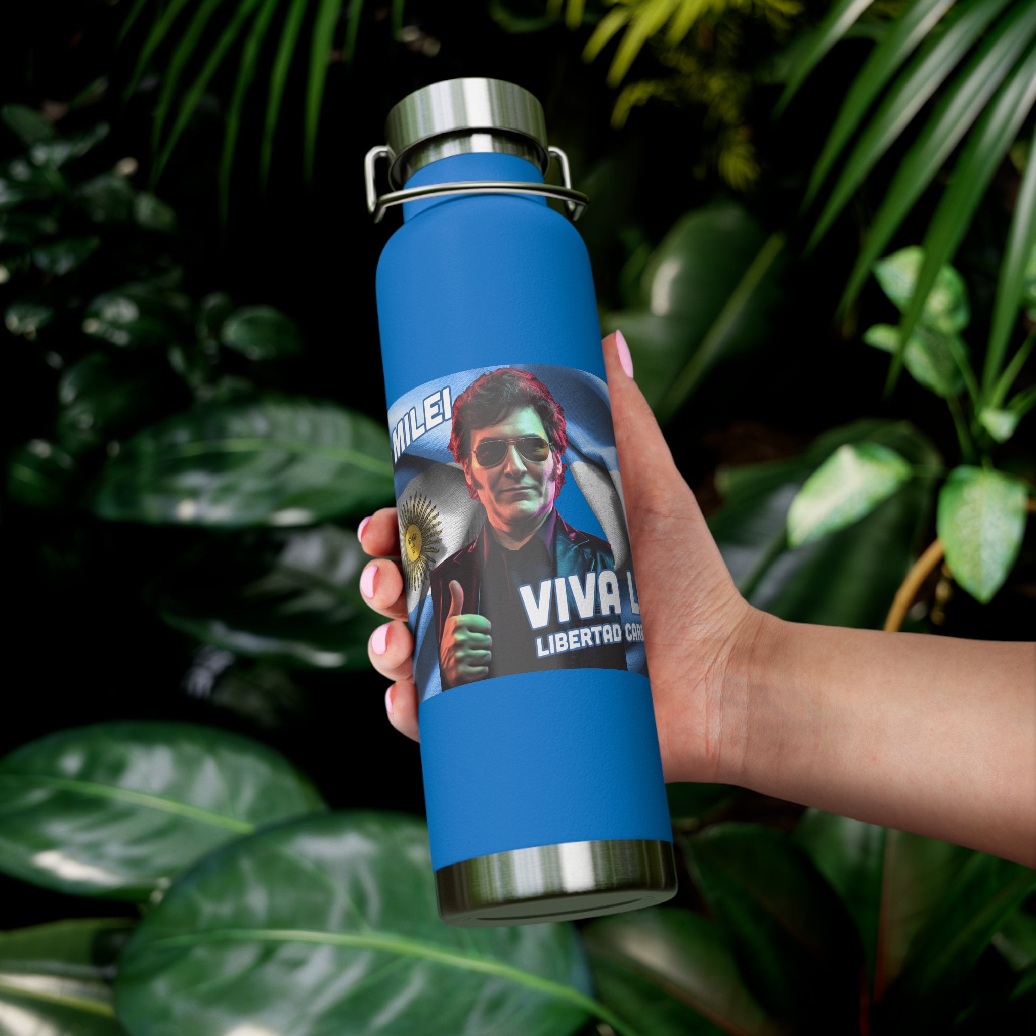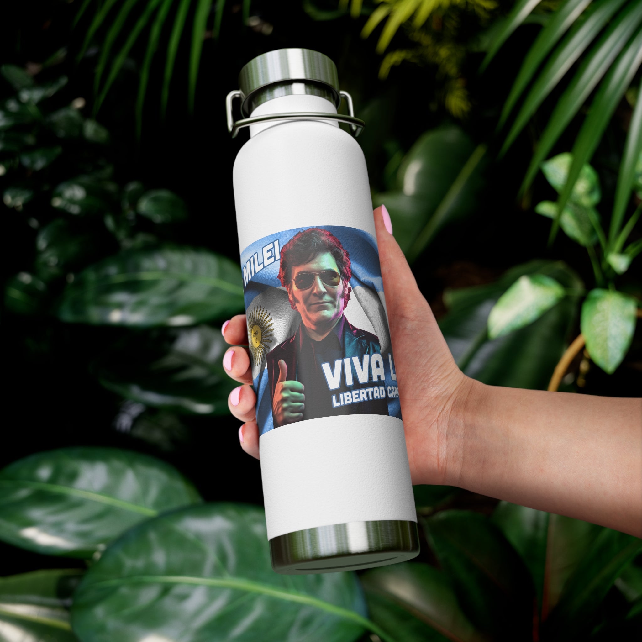 Dive into a world where style meets substance with our "Viva La Libertad Carajo" Copper Vacuum Insulated Bottle, featuring Argentina's dynamic libertarian president, Javier Milei. This isn't just a water bottle; it's a symbol of freedom, a nod to Argentina's vibrant spirit, and a testament to the cool, retro flair of synthwave aesthetics.