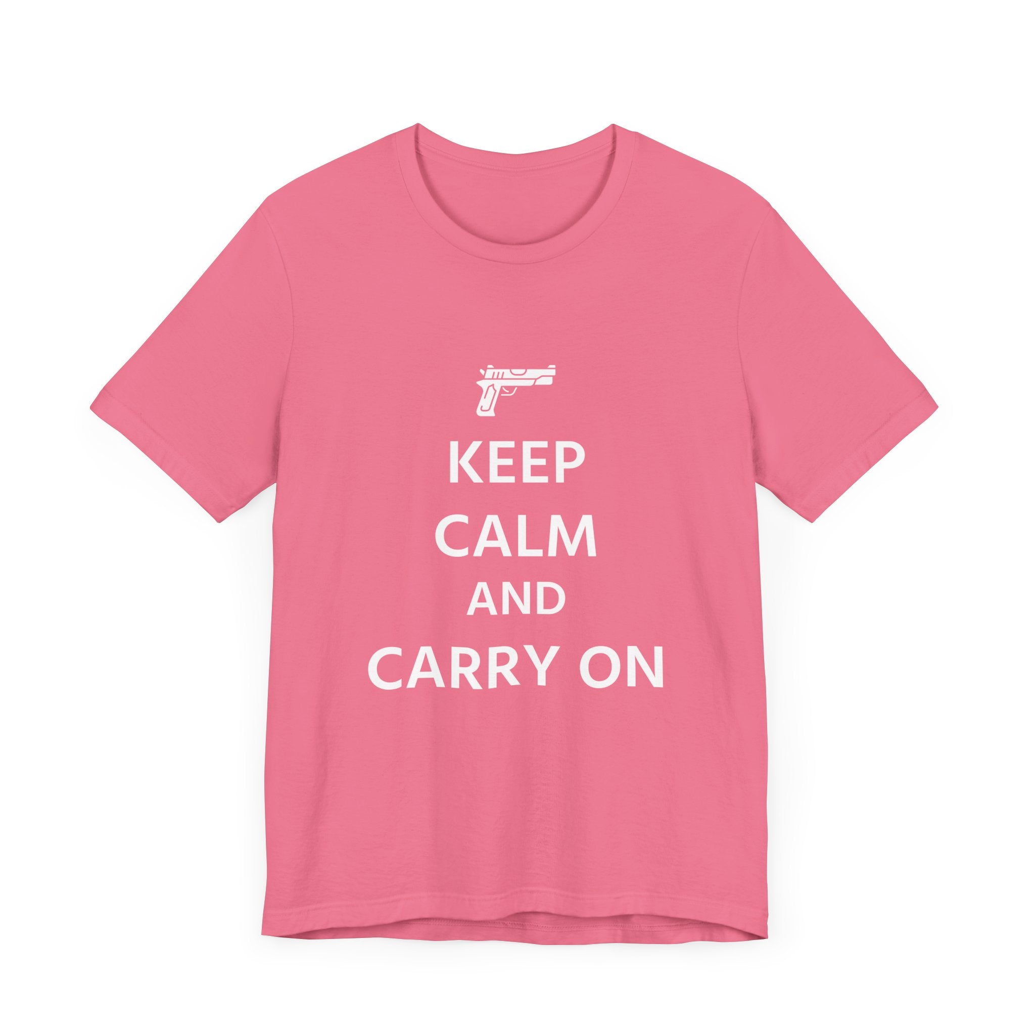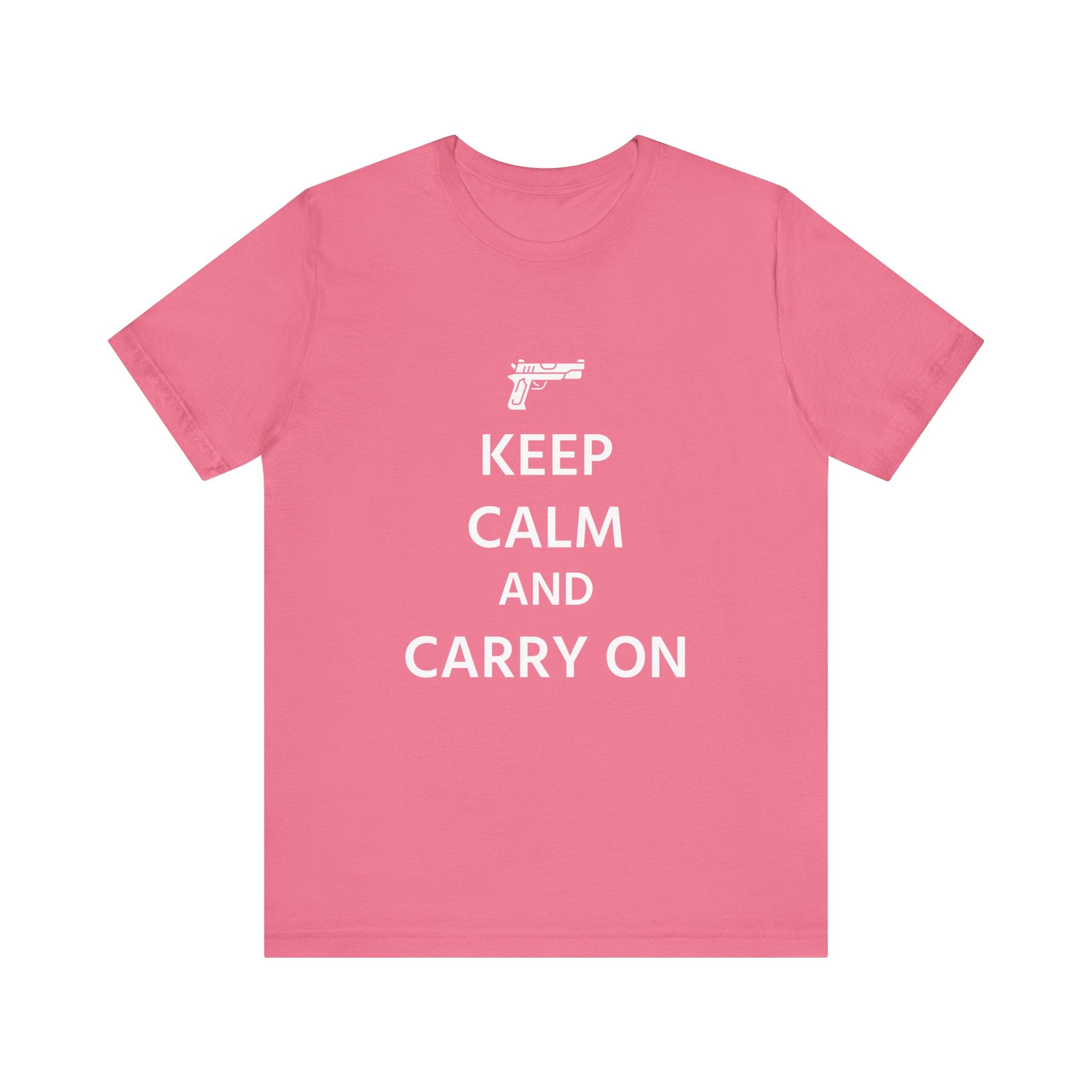 For those who live life with precision and purpose, the Keep Calm and Carry On t-shirt is your ultimate badge of badassery. Featuring the iconic phrase reimagined with a handgun replacing the crown, this shirt delivers a bold statement for gun enthusiasts who believe in staying calm, carrying strong, and never backing down.