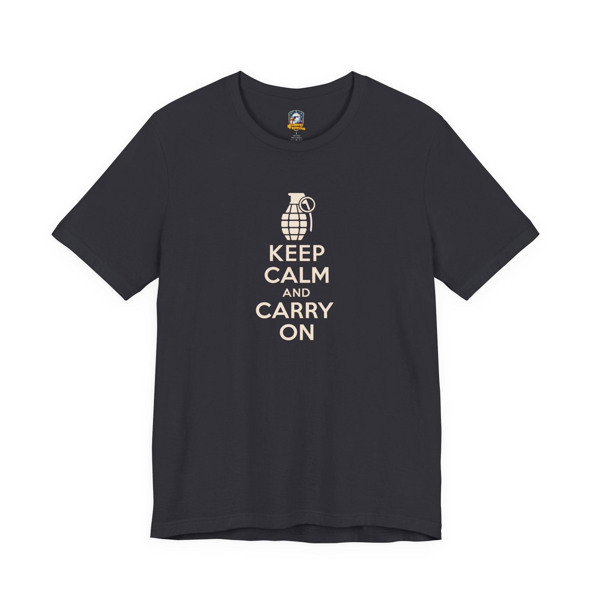 In 1939, as Britain prepared for World War II, the government created the iconic "Keep Calm and Carry On" poster to boost morale during the darkest days ahead. Though never widely distributed during the war, this simple yet powerful message has become a timeless symbol of British resilience, stoicism, and the ability to stay cool under pressure. This Keep Calm and Carry On t-shirt brings that classic motivational message into your everyday wardrobe.