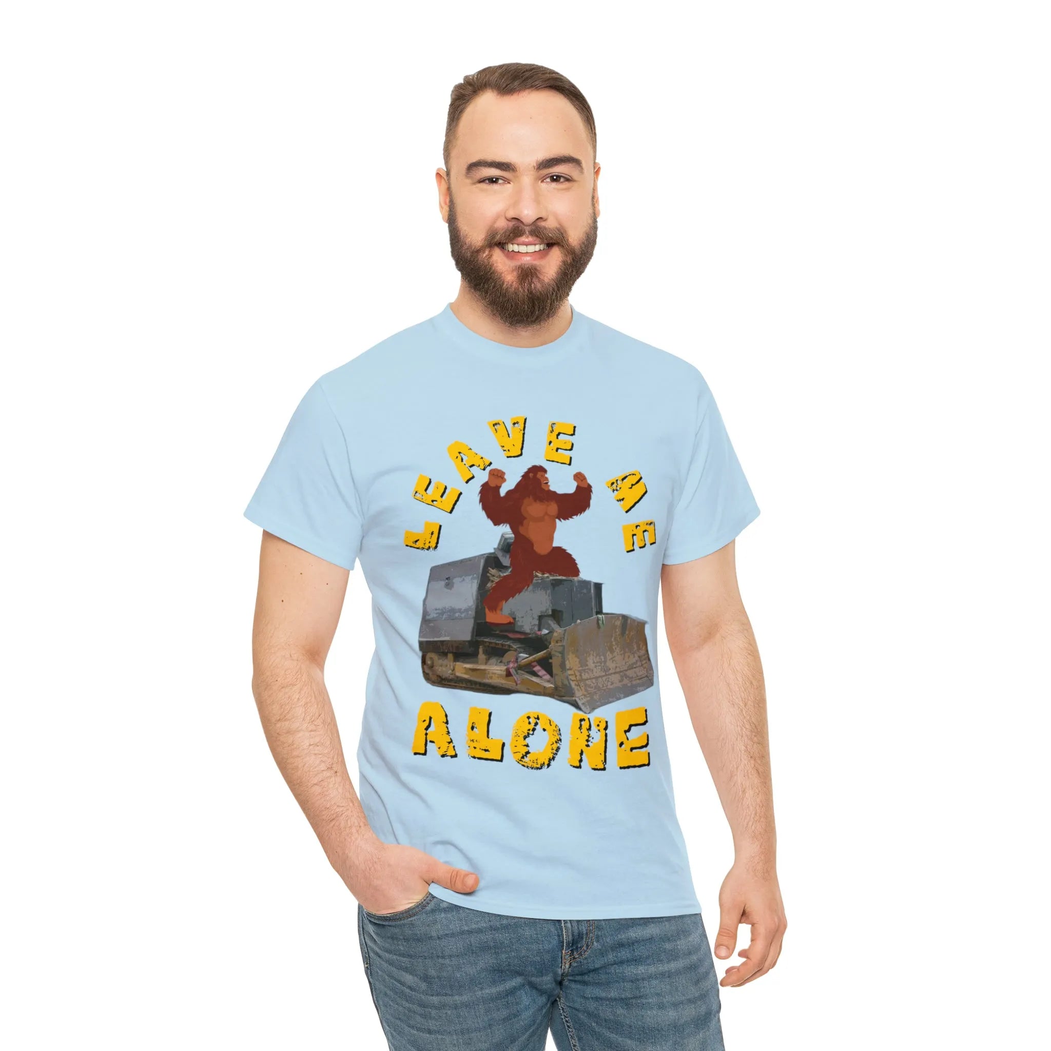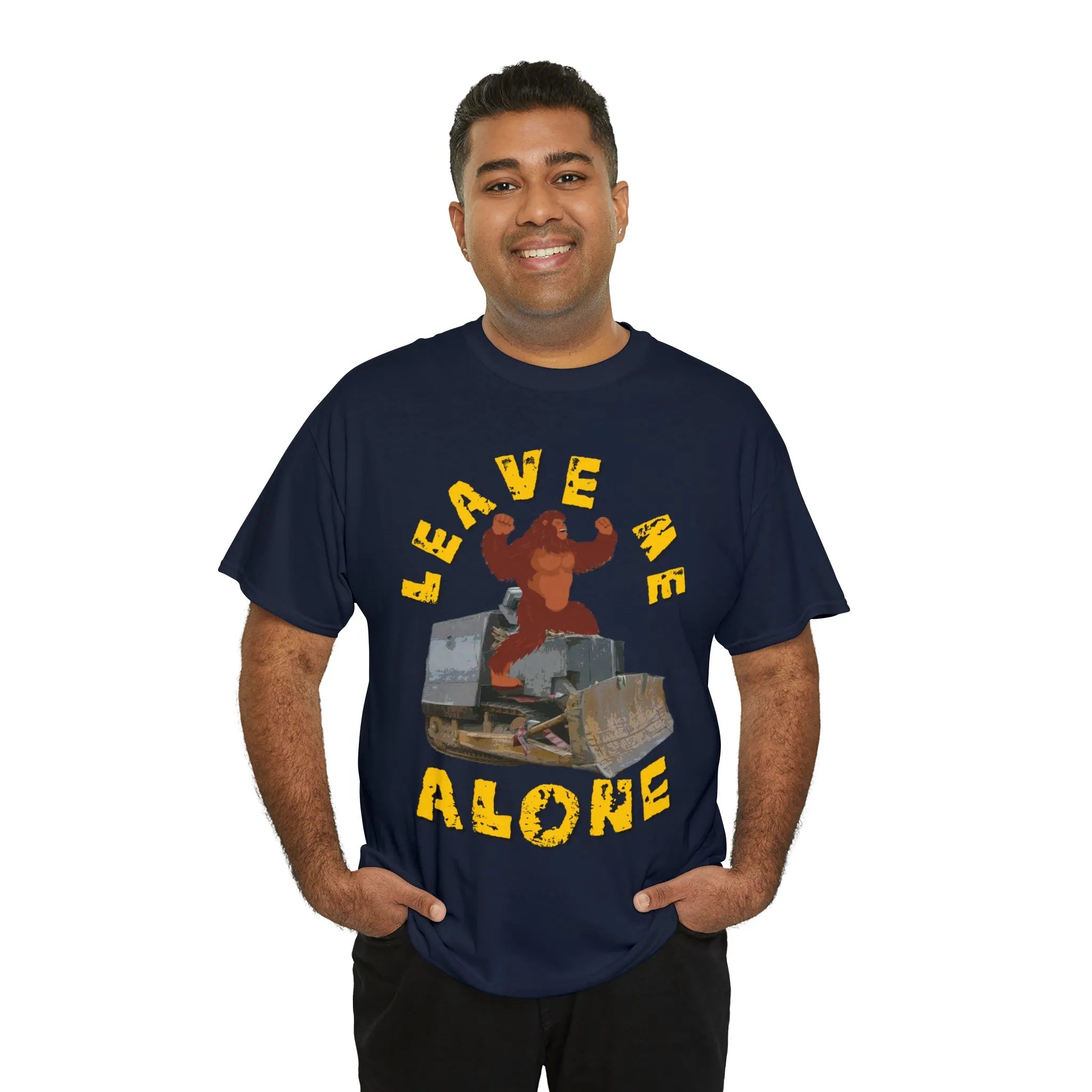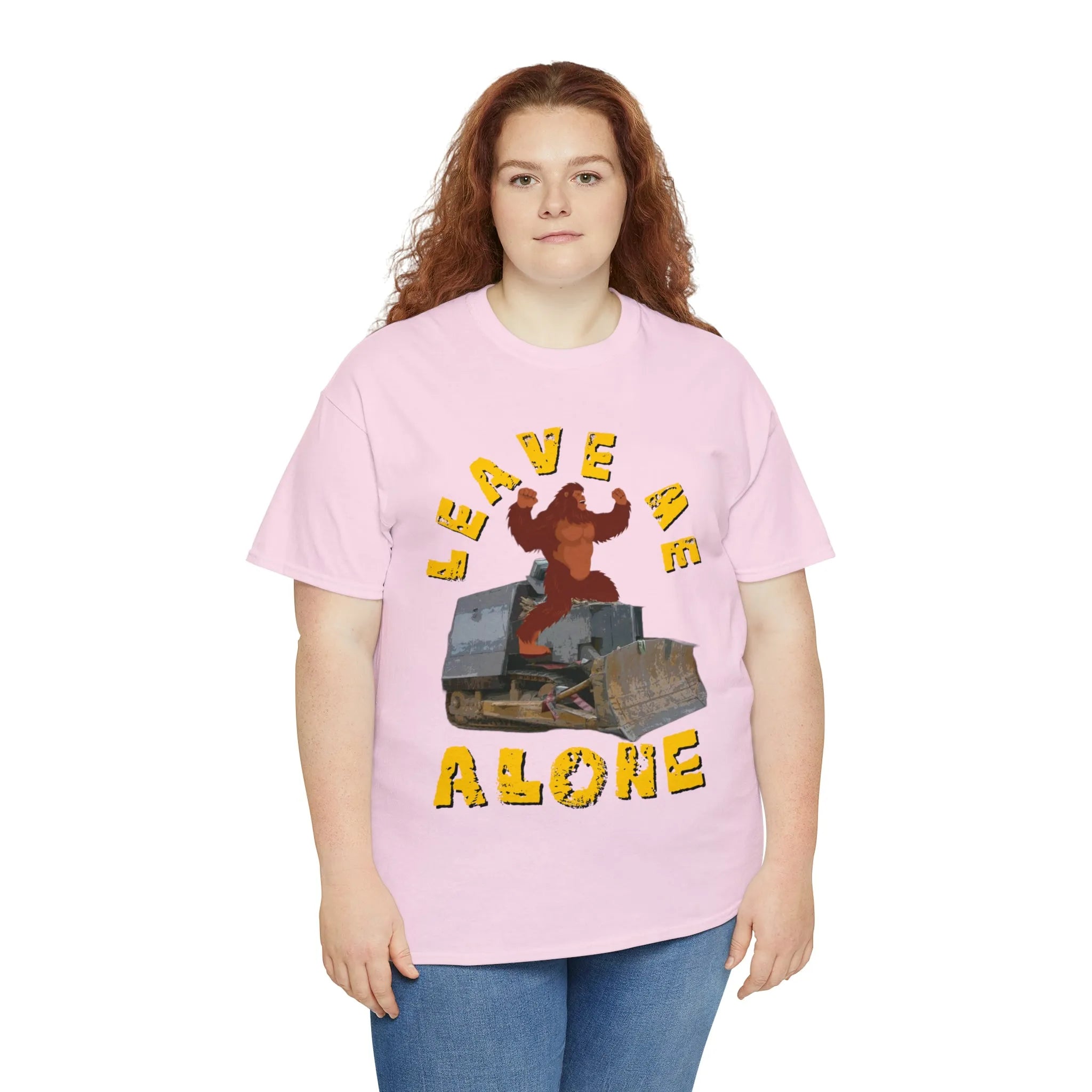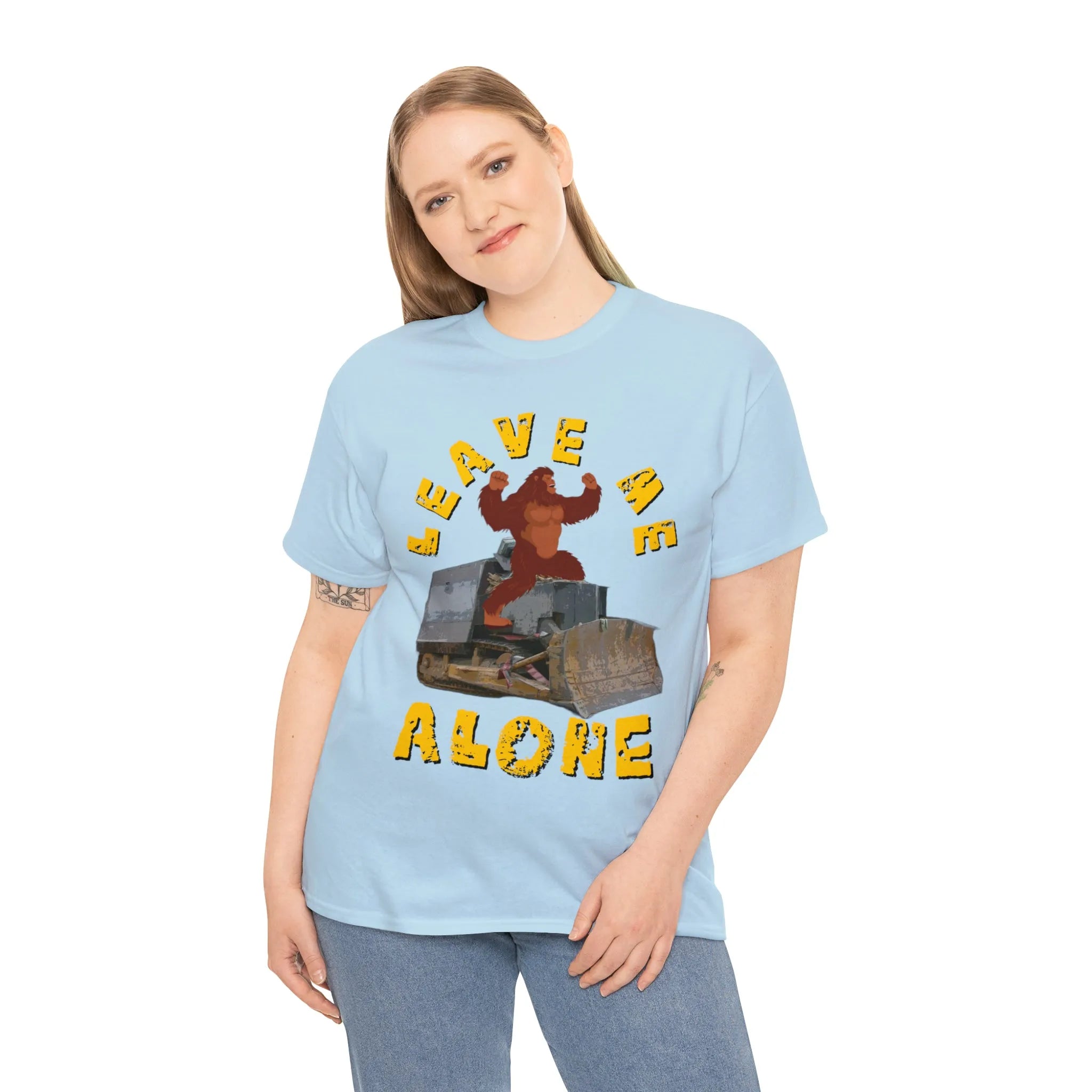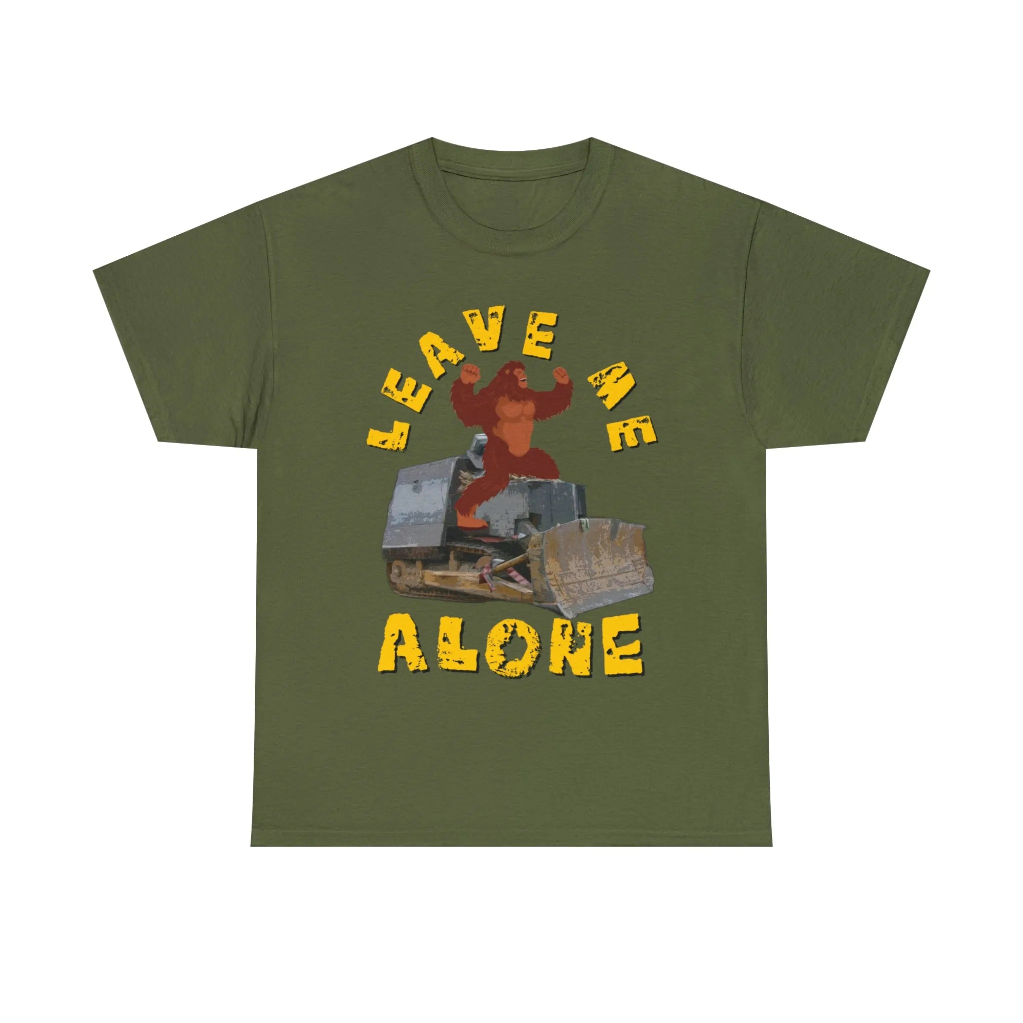 Elevate your fashion game with our one-of-a-kind "Leave Me Alone" T-shirt! This bold and witty design showcases the legendary Bigfoot taking control of a powerful Killdozer, sending a clear message to the world: "I value my personal space!"