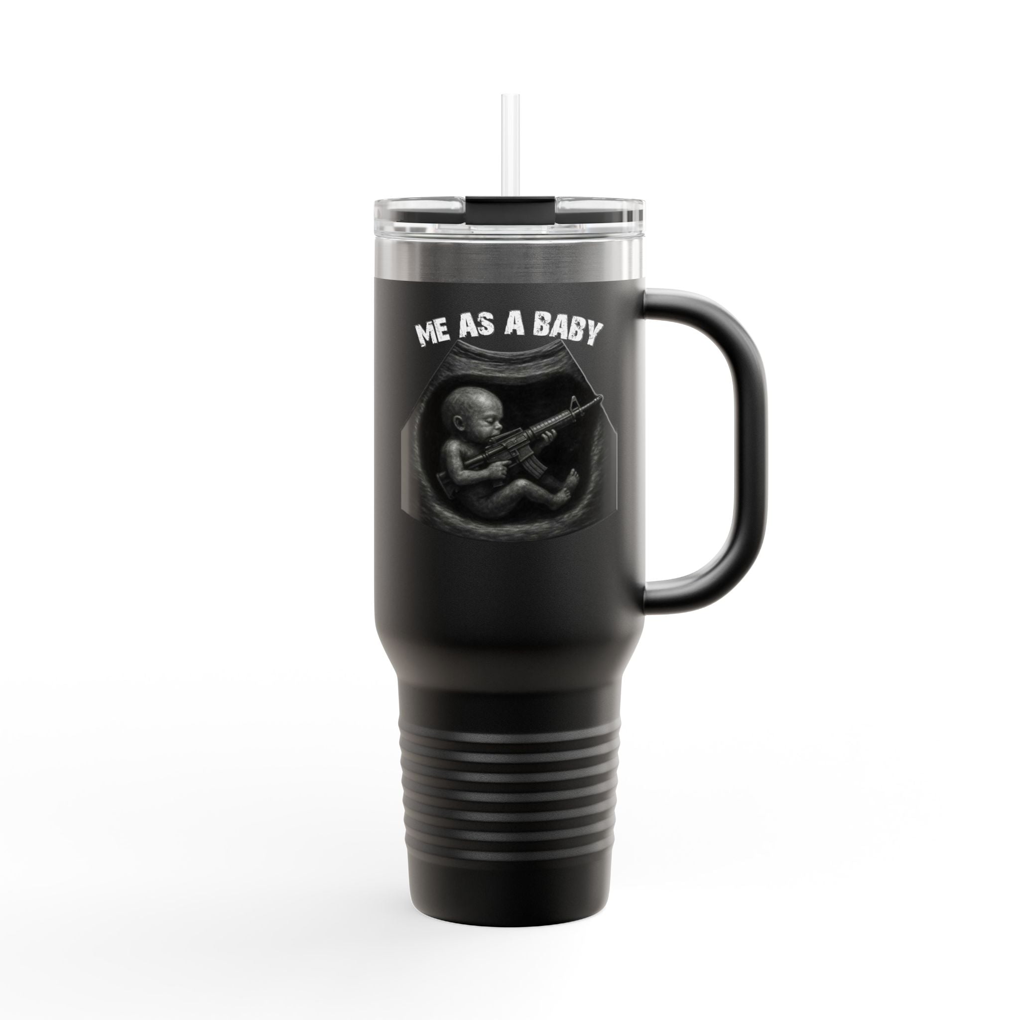 Stay locked, loaded, and fully caffeinated. The Me As a Baby Tumbler features the instantly iconic ultrasound image of a baby gripping a rifle — a hilarious, hard-hitting graphic that says you were born ready. Whether you’re hitting the road, the range, or just fighting off the morning fog, this tumbler makes your stance clear and your drink the perfect temperature.