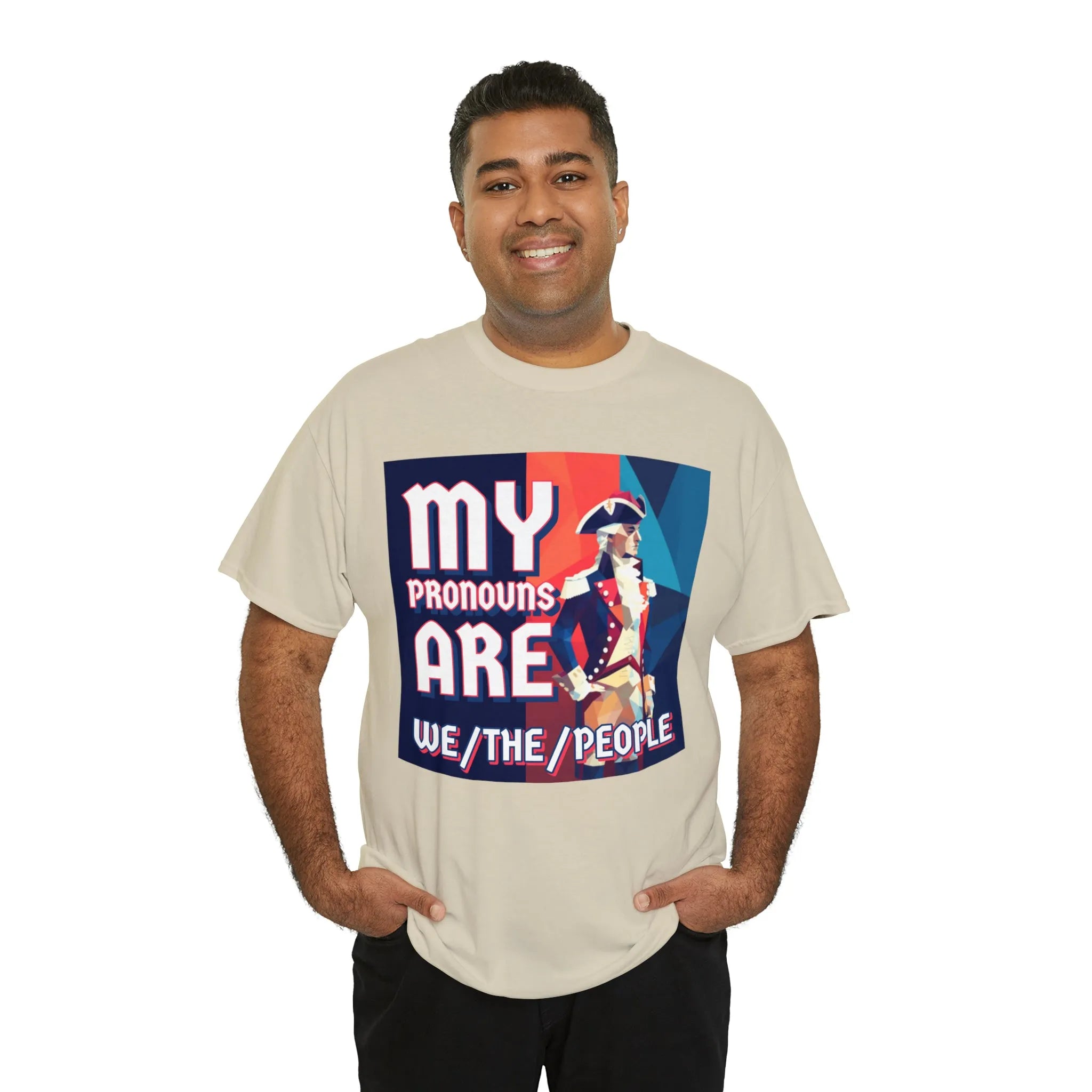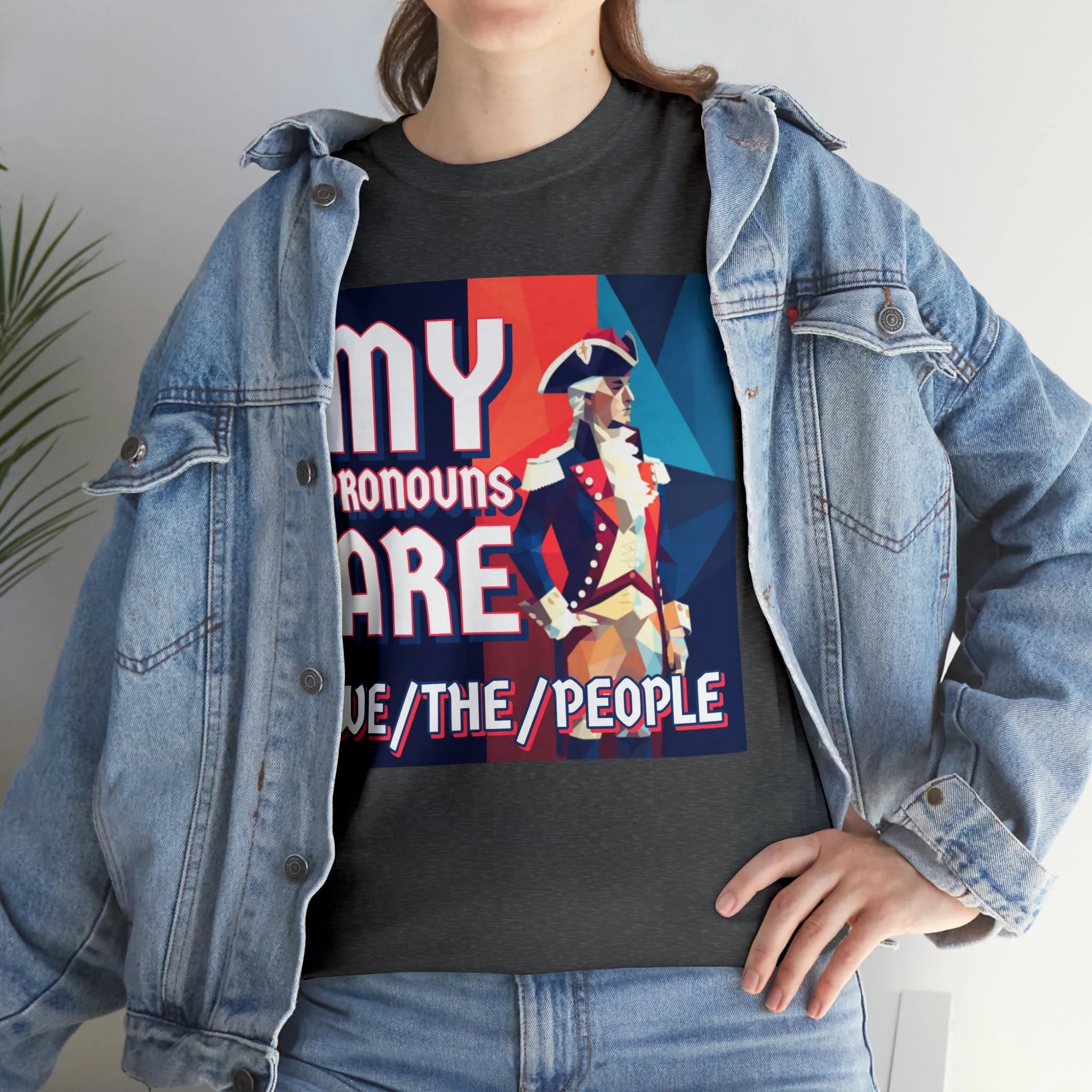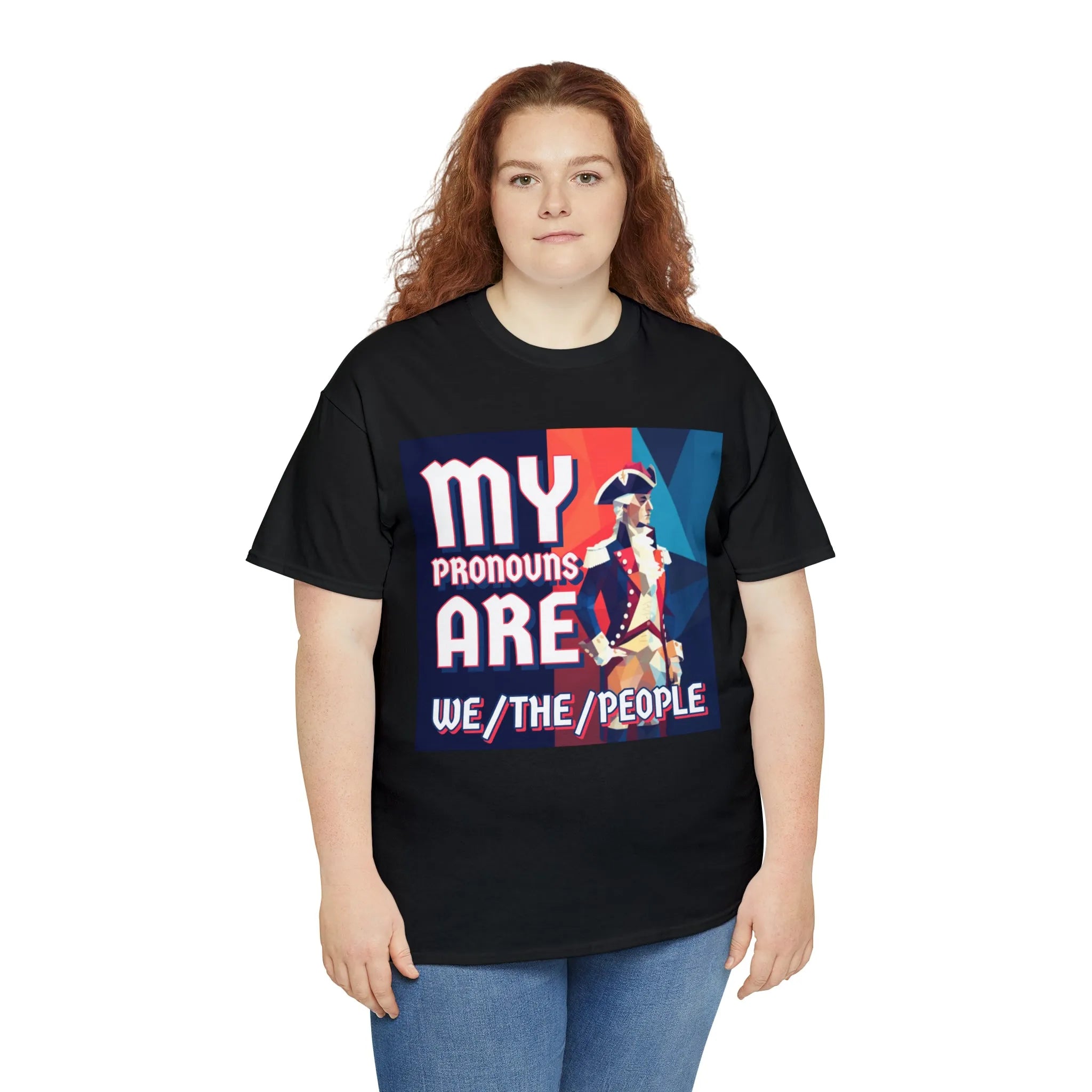 Whether you wear it to rallies, pride parades, or simply as a daily reminder, our "My Pronouns Are We The People" t-shirt brings inclusivity to the forefront. Join the movement, embrace your identity, and let your voice shine with this remarkable tee that blends revolutionary spirit and progressive vision. Get yours now and wear your pronouns with pride!