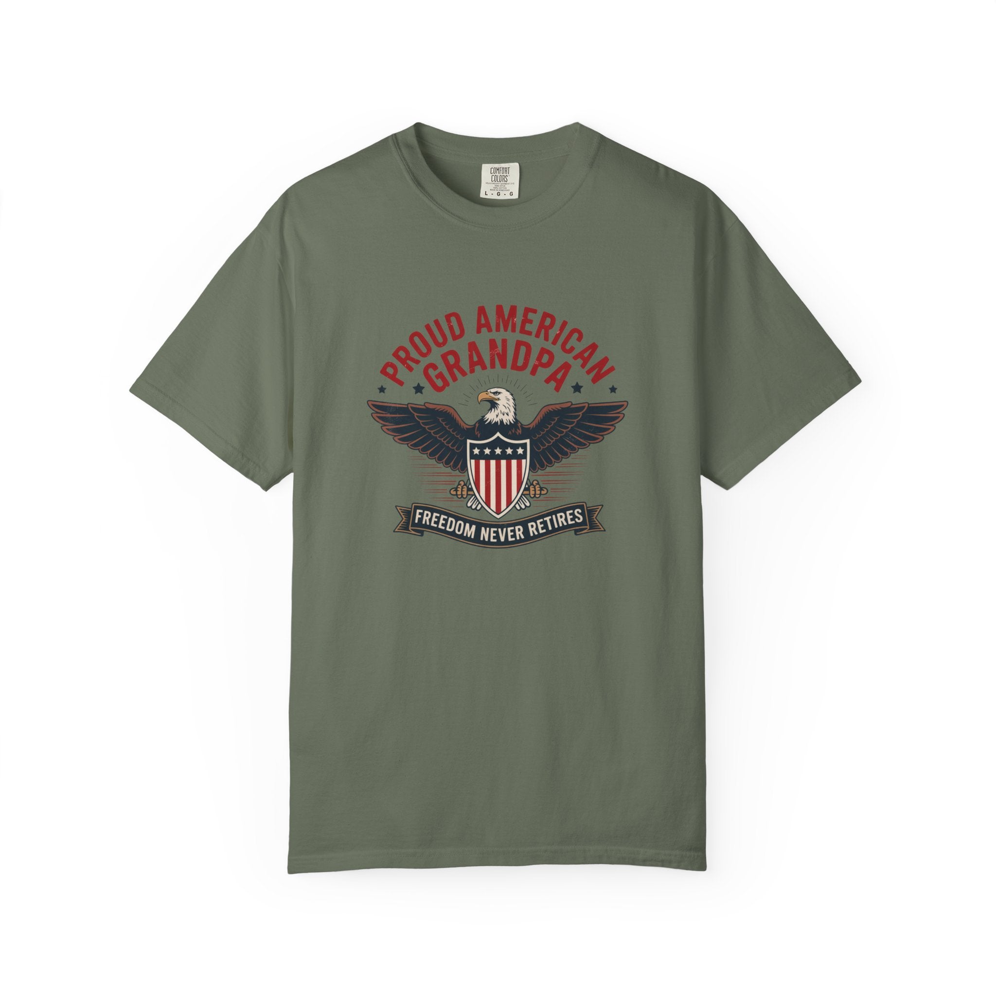 Searching for the ideal gift for Grandpa? This patriotic American t-shirt hits the mark every time. Perfect for Father's Day, birthdays, Veterans Day, Fourth of July, or simply because he deserves it. Watch his face light up when he unwraps a gift that truly speaks to who he is—a proud American grandfather.