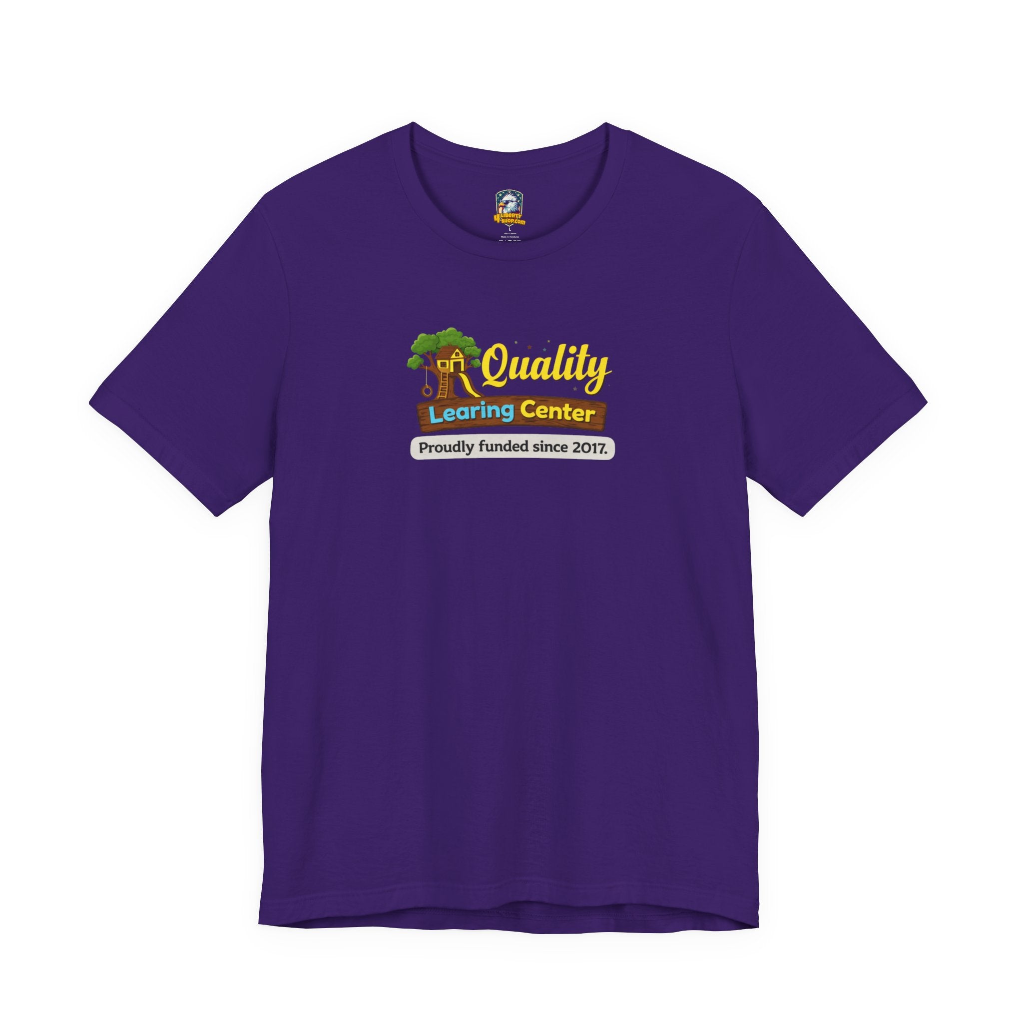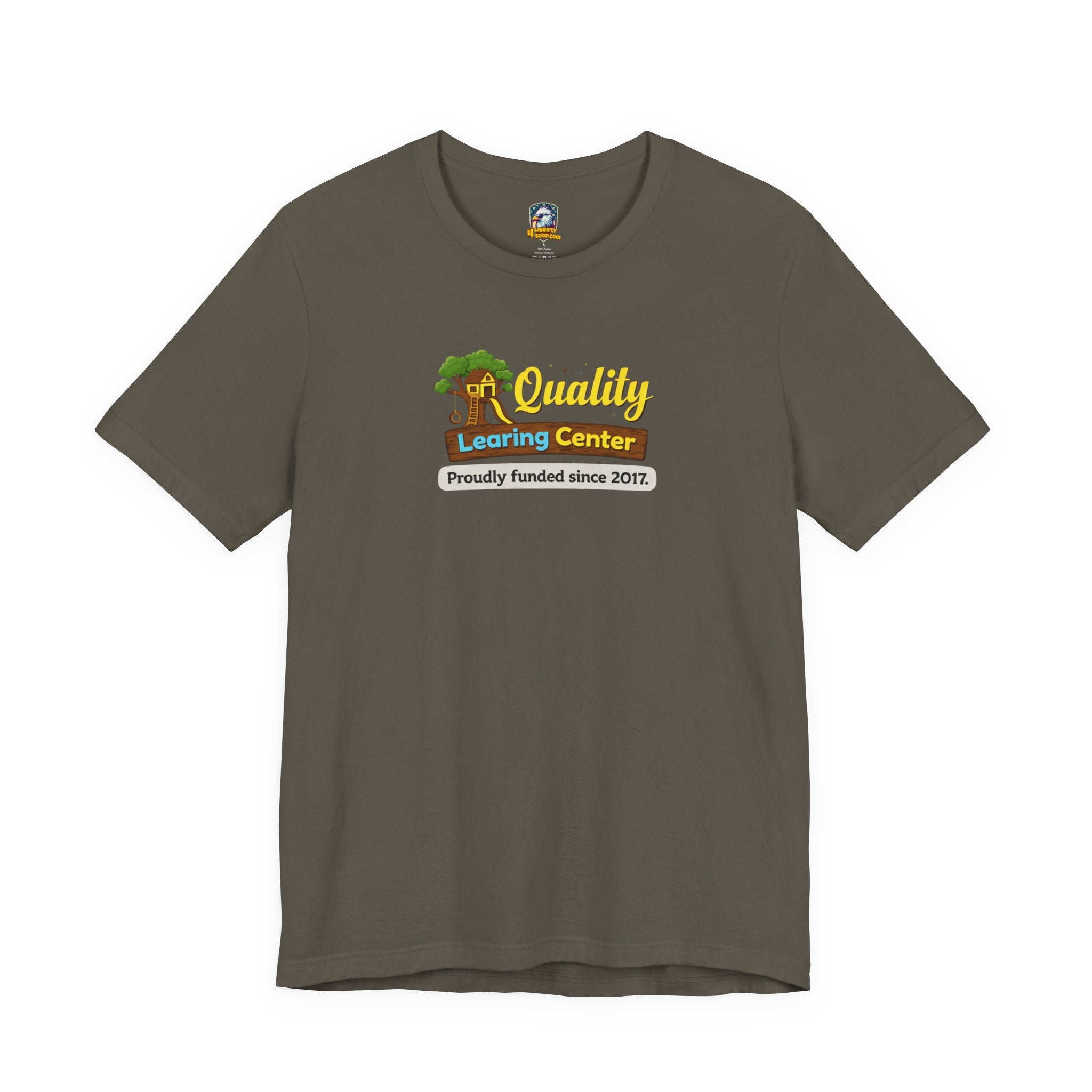 This soft, comfortable everyday tee celebrates the legendary Quality Learing Center of Minneapolis, Minnesota—a shining beacon of educational excellence that somehow managed to burn through millions in taxpayer dollars while Governor Tim Walz looked the other way. The bright, cheerful logo on the chest shows a playful treehouse and slide that looks like something any proud parent would recognize, right underneath the perfectly wholesome slogan: "Proudly funded since 2017." What it doesn't show is where all that funding actually went, but hey, who's counting? (Spoiler: The auditors are.)