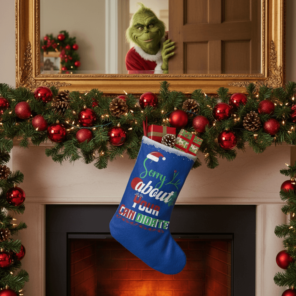 Make a bold statement this holiday season with the "Sorry About Your Candidate" Christmas stocking! Perfect for those who love mixing political humor with festive cheer, this stocking is guaranteed to spark conversations and laughs at holiday gatherings, family get-togethers, and everywhere in between.