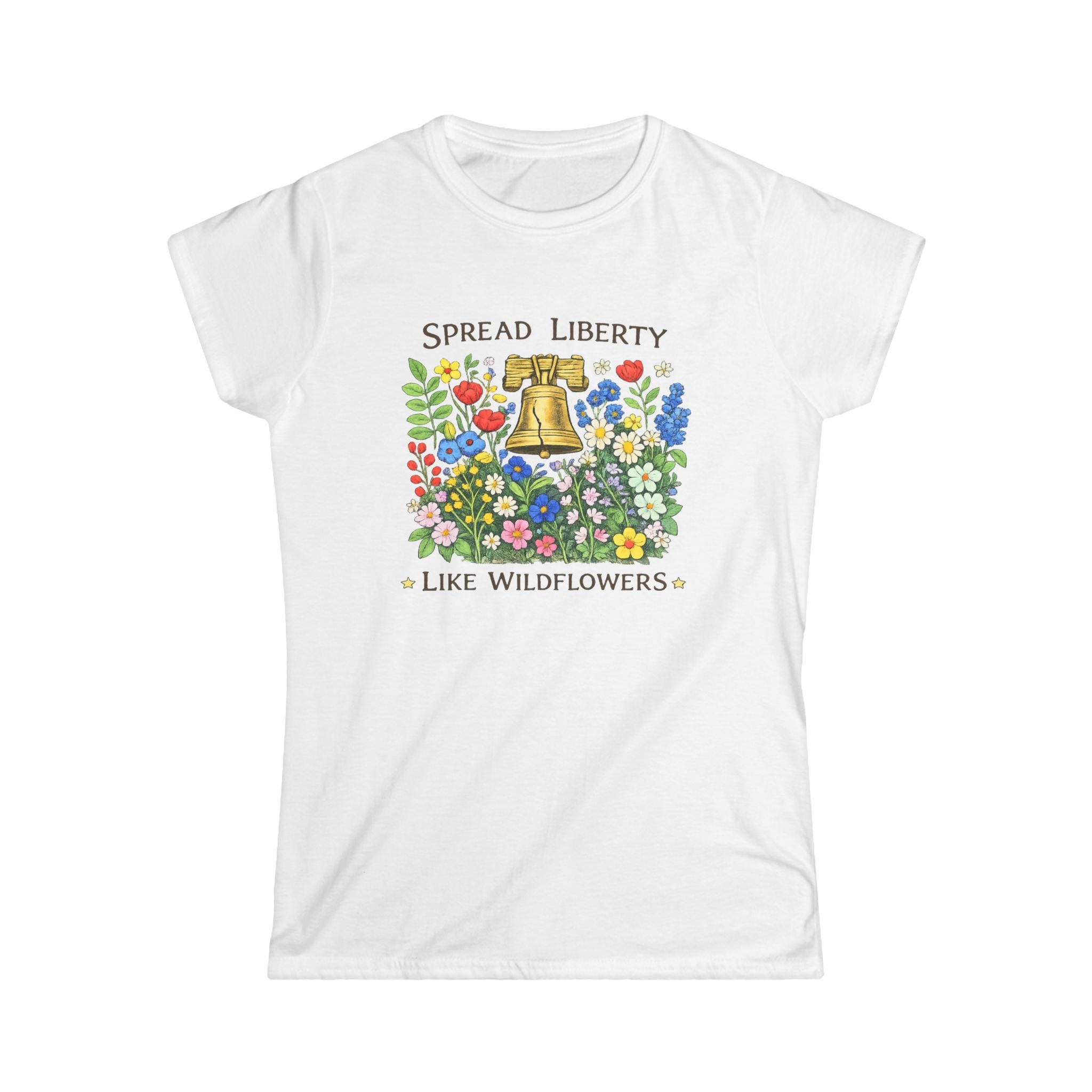 In 1776, the Liberty Bell rang out across Philadelphia, calling citizens to hear the first public reading of the Declaration of Independence. That single chime echoed through history, planting seeds of freedom that would bloom across a nation. This tee captures that spirit with a hand-drawn Liberty Bell rising from a meadow of wildflowers—a visual reminder that liberty, like nature itself, spreads organically when given room to grow.