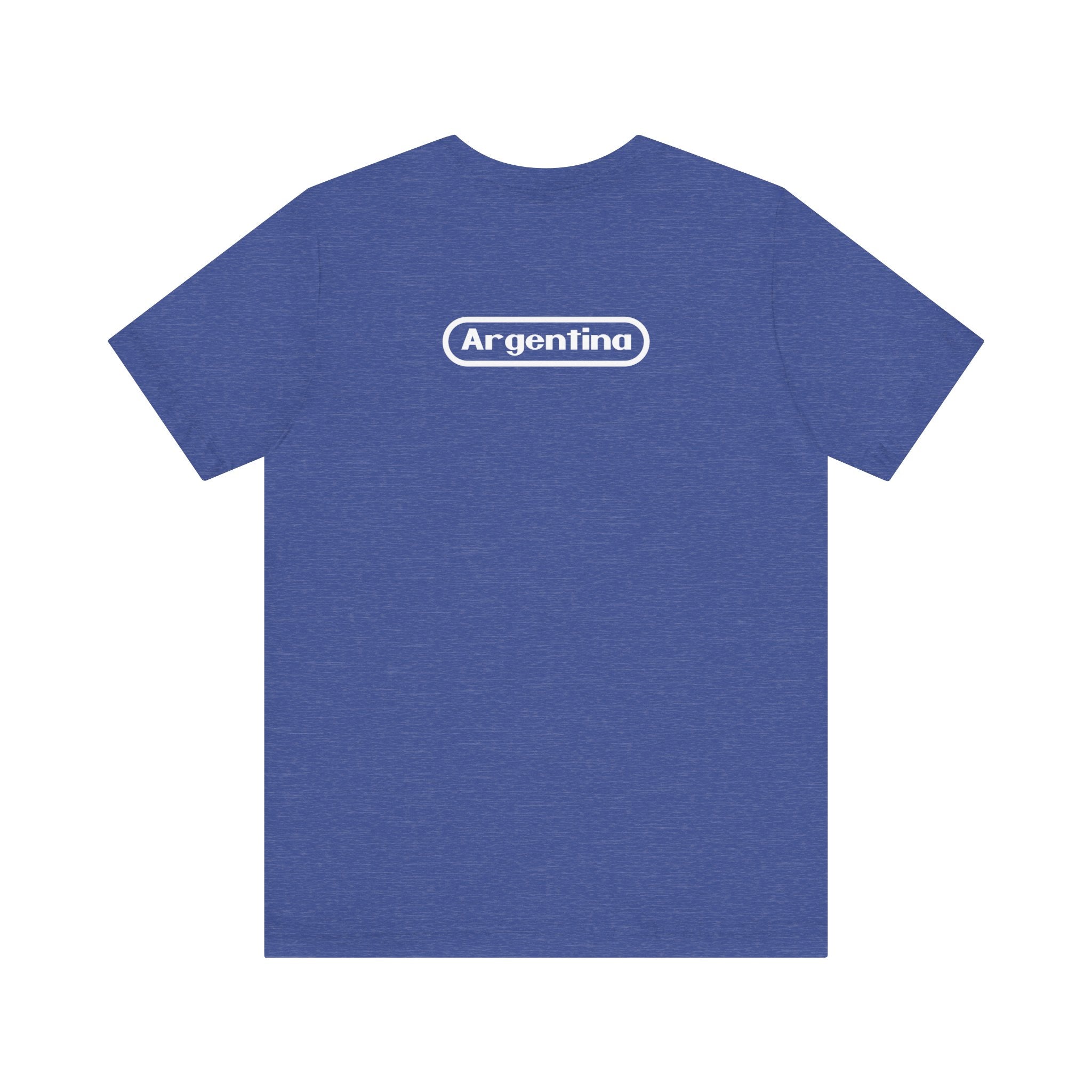 Whether you're a fan of Milei's bold political stance, a gaming aficionado, or just someone who loves a good fashion statement, this tee is sure to turn heads and spark conversations. It's a playful nod to both the nostalgia of old-school gaming and the spirited movement for liberty in Argentina.