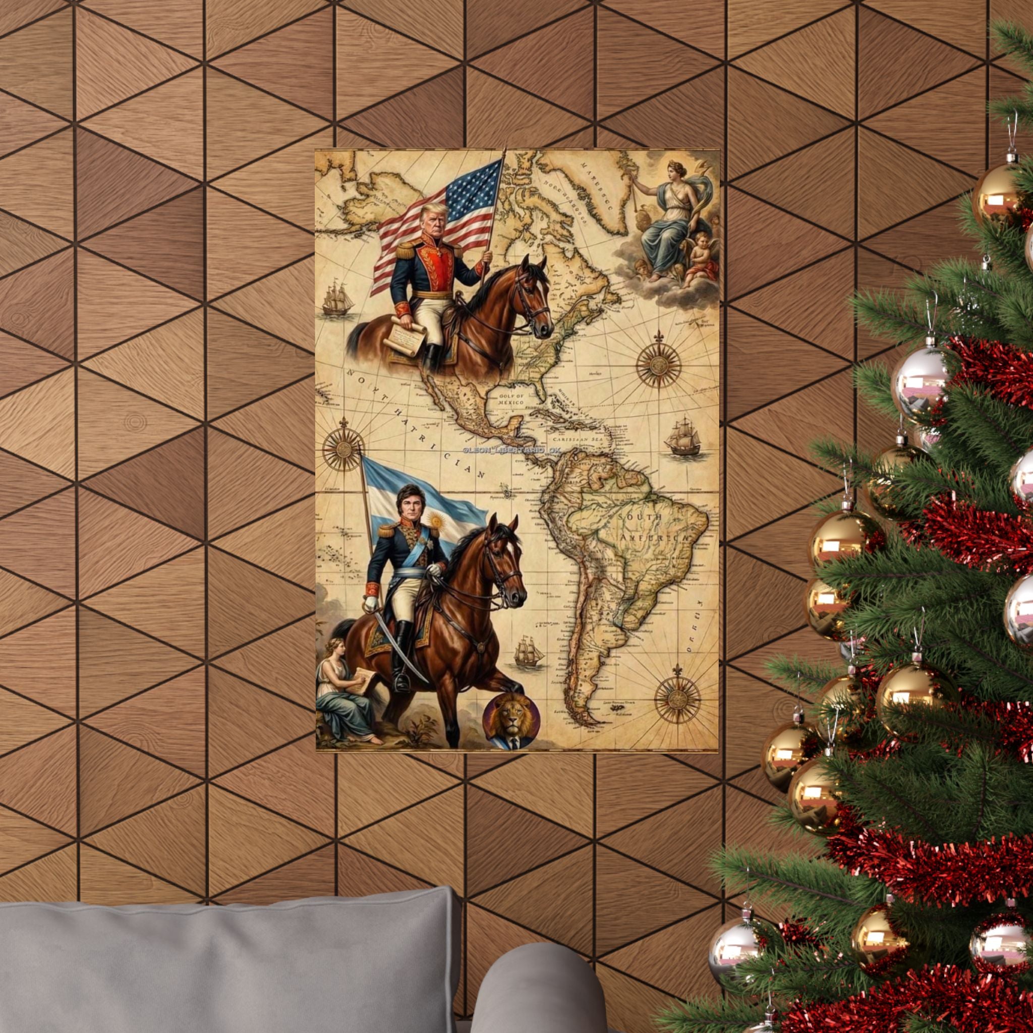 The vintage cartographic aesthetic isn't just for show. Like the explorers who charted unknown territories, Trump and Milei are mapping new paths through the wilderness of bureaucratic overreach, regulatory capture, and government bloat. Trump's "America First" policies and Milei's radical libertarian reforms in Argentina represent a rejection of the failed Keynesian consensus that has dominated Western economics for decades. This poster doesn't just commemorate two leaders—it celebrates a philosophy, a movement, and a moment when the tide began to turn back toward the principles that made free nations prosperous in the first place.