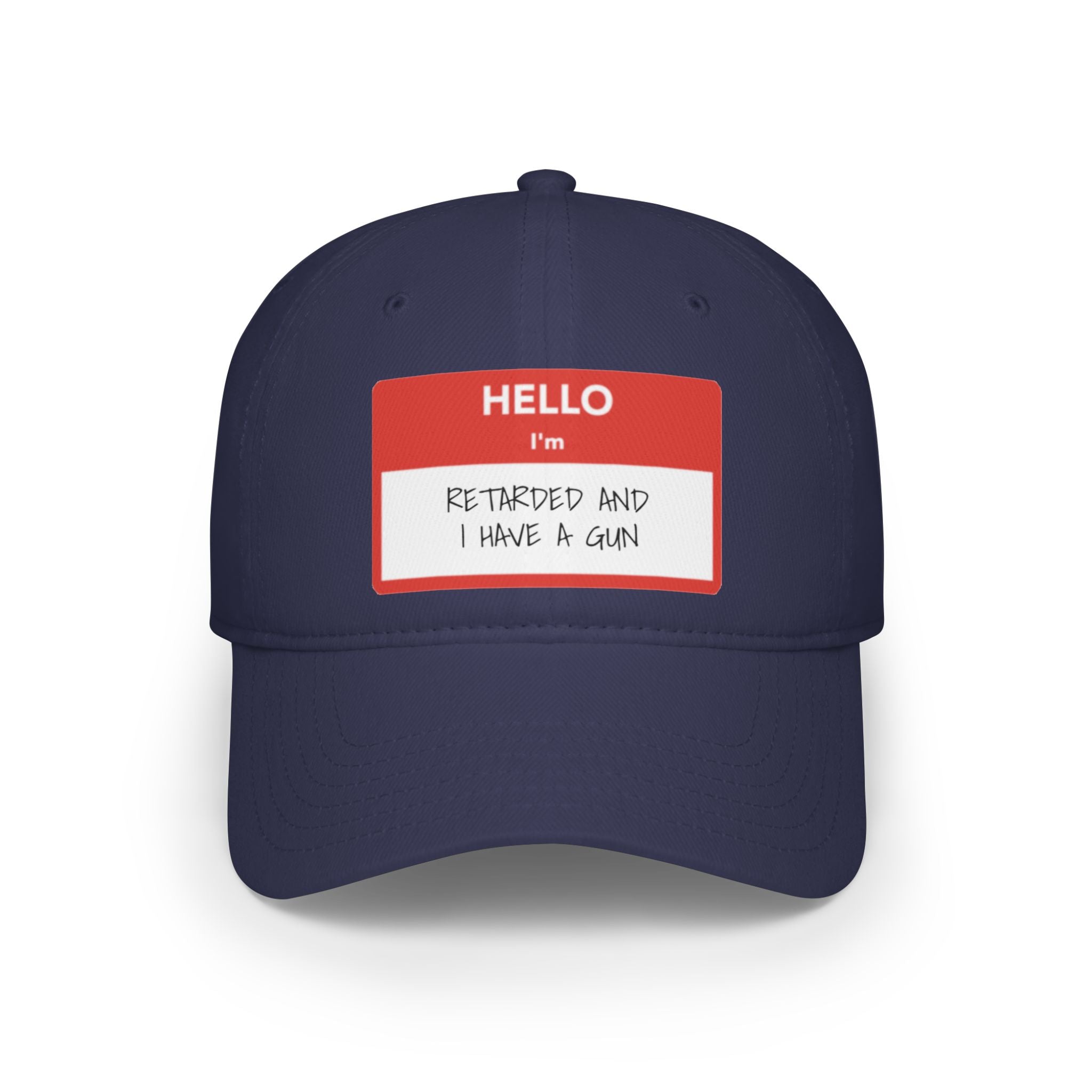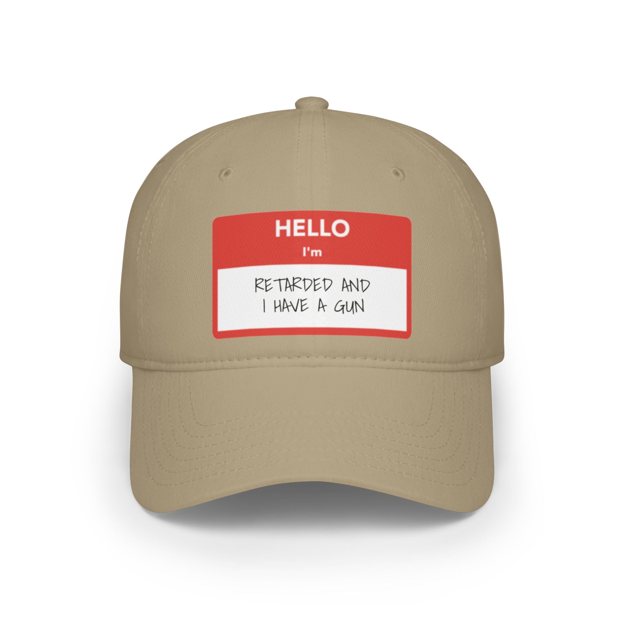 When your hat says it all, you don’t need small talk. The “Hello, I’m Retarded & I Have A Gun” cap is your new go-to for casual days, range trips, and conversations you didn’t start — but will definitely finish.