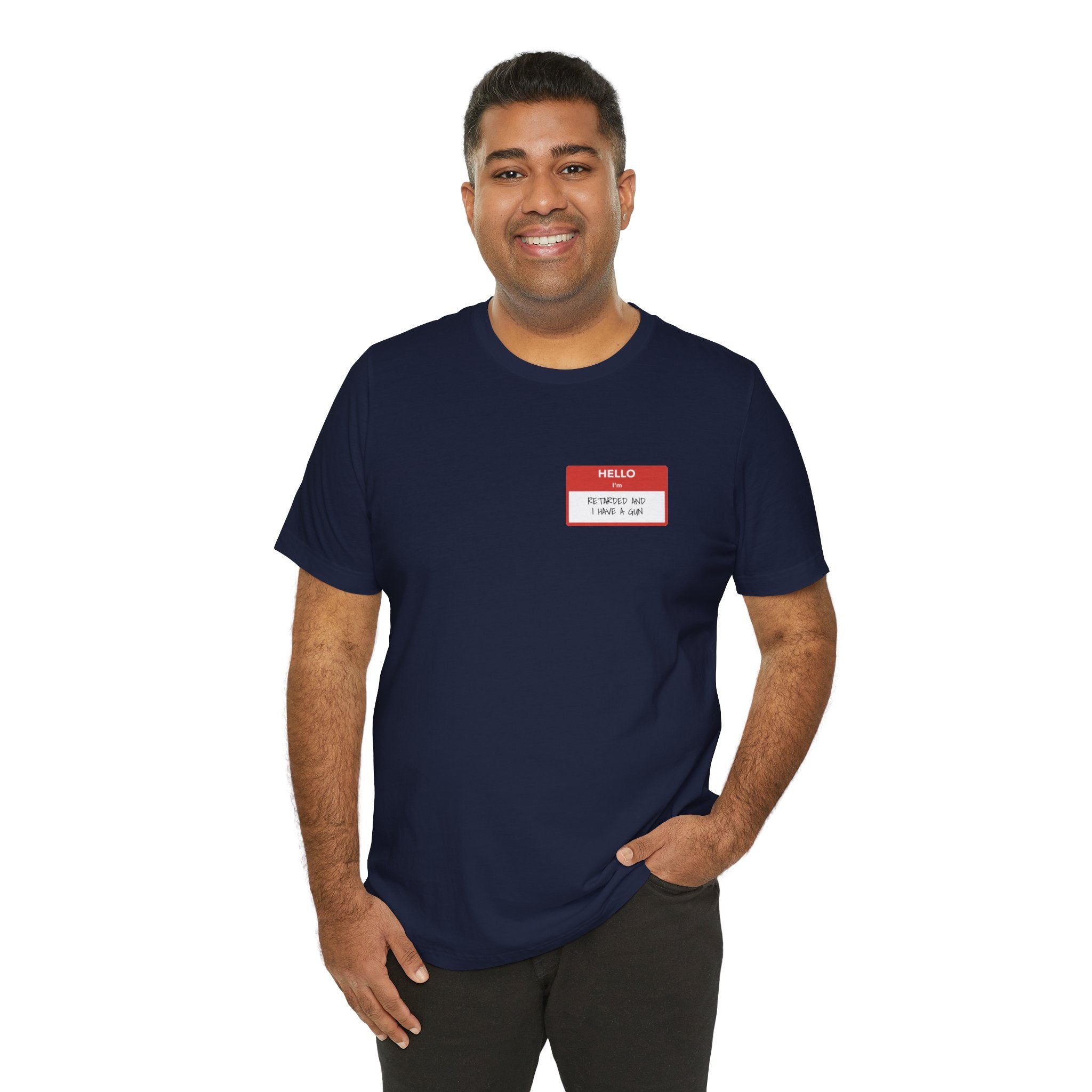 Introducing the shirt that says what everyone’s thinking but no one wants to admit. Our “Hello, I’m Retarded” tee is for those who thrive on dark humor and brutal honesty. Styled like a classic name badge, it’s the perfect mix of sarcasm and statement piece.